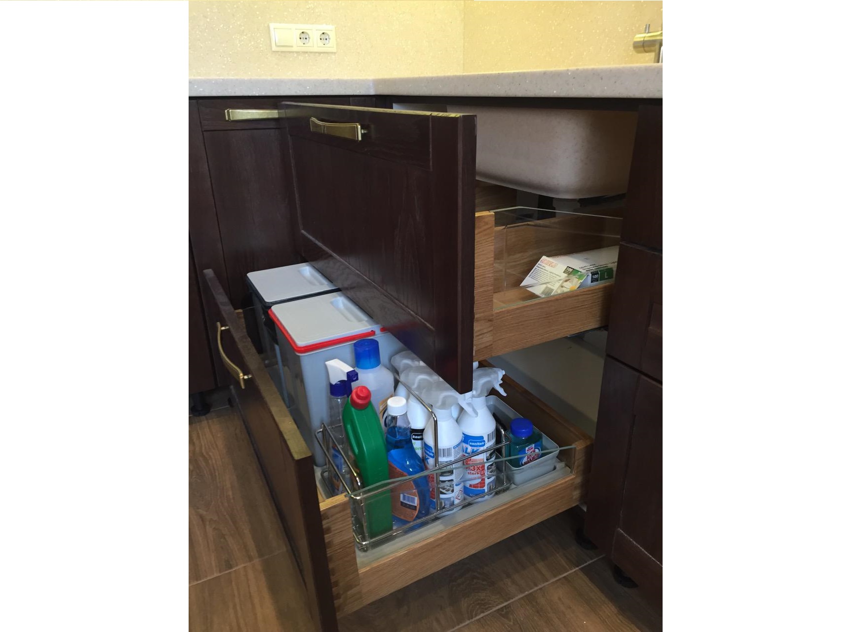Фурнитура: выдвижные механизмы Hettich (Германия), подъемные механизмы и петли BLUM (Австрия), дополнительные комплектующие Inoxa (Италия), ручки Giusti (Италия).