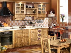 Темный цвет фасадов в тандеме с древесным оттенком столешницы.