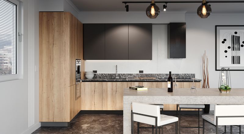 Фурнитура: выдвижные механизмы Hettich (Германия), подъемные механизмы и петли BLUM (Австрия), дополнительные комплектующие Inoxa (Италия).