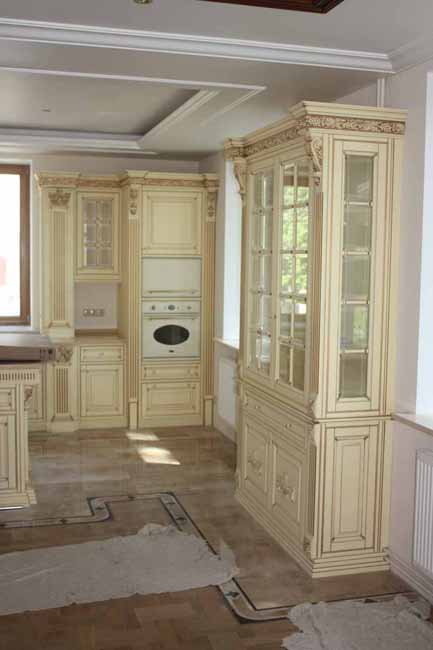 Кухня из светлого массива натурального дерева изготовлена по канонам классического дизайна, которые нашли свое отражение практически в каждом элементе этого элитного гарнитура. Среди унылого однообразия стандартных моделей, кухня выделяется эксклюзивной конструкцией.