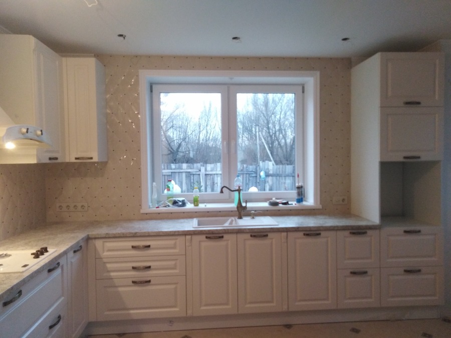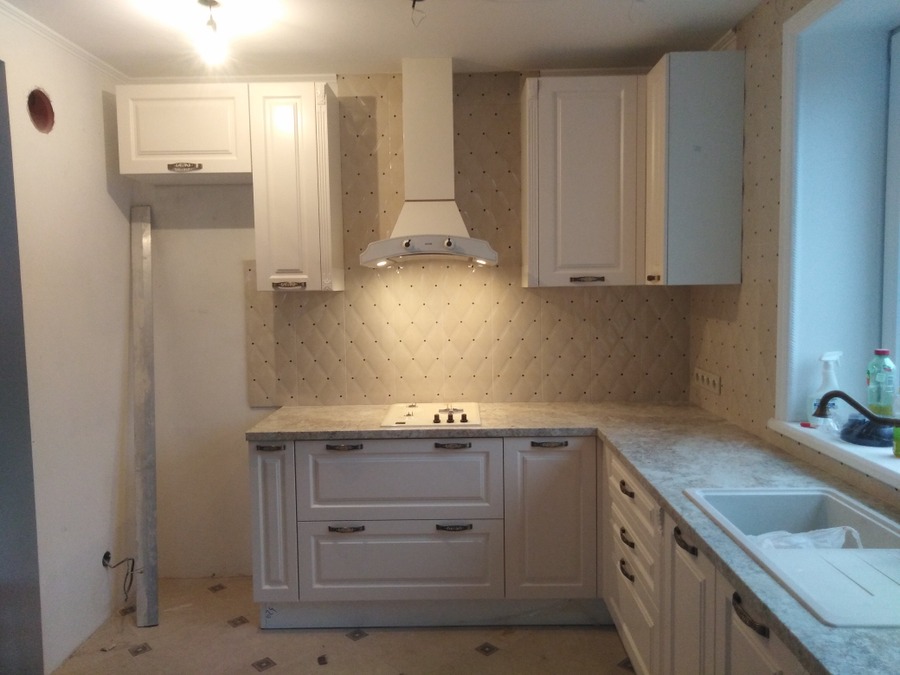 Современная кухня в скандинавском стиле. Светлые фасады из ДСП.