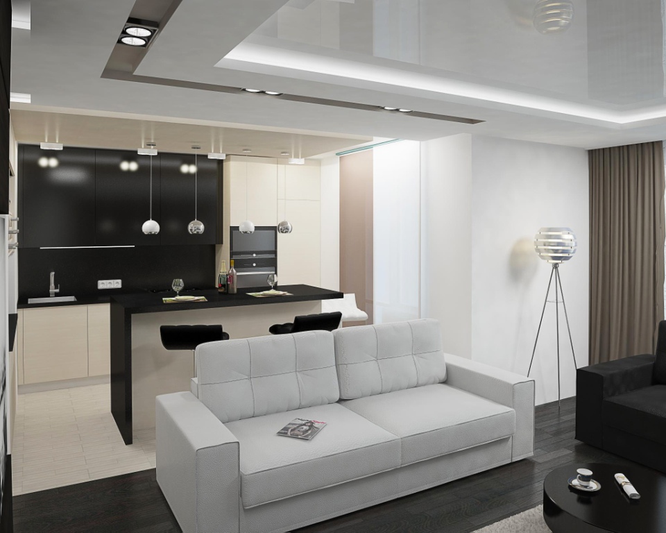 Верхние фасады белого цвета, нижние – черного.