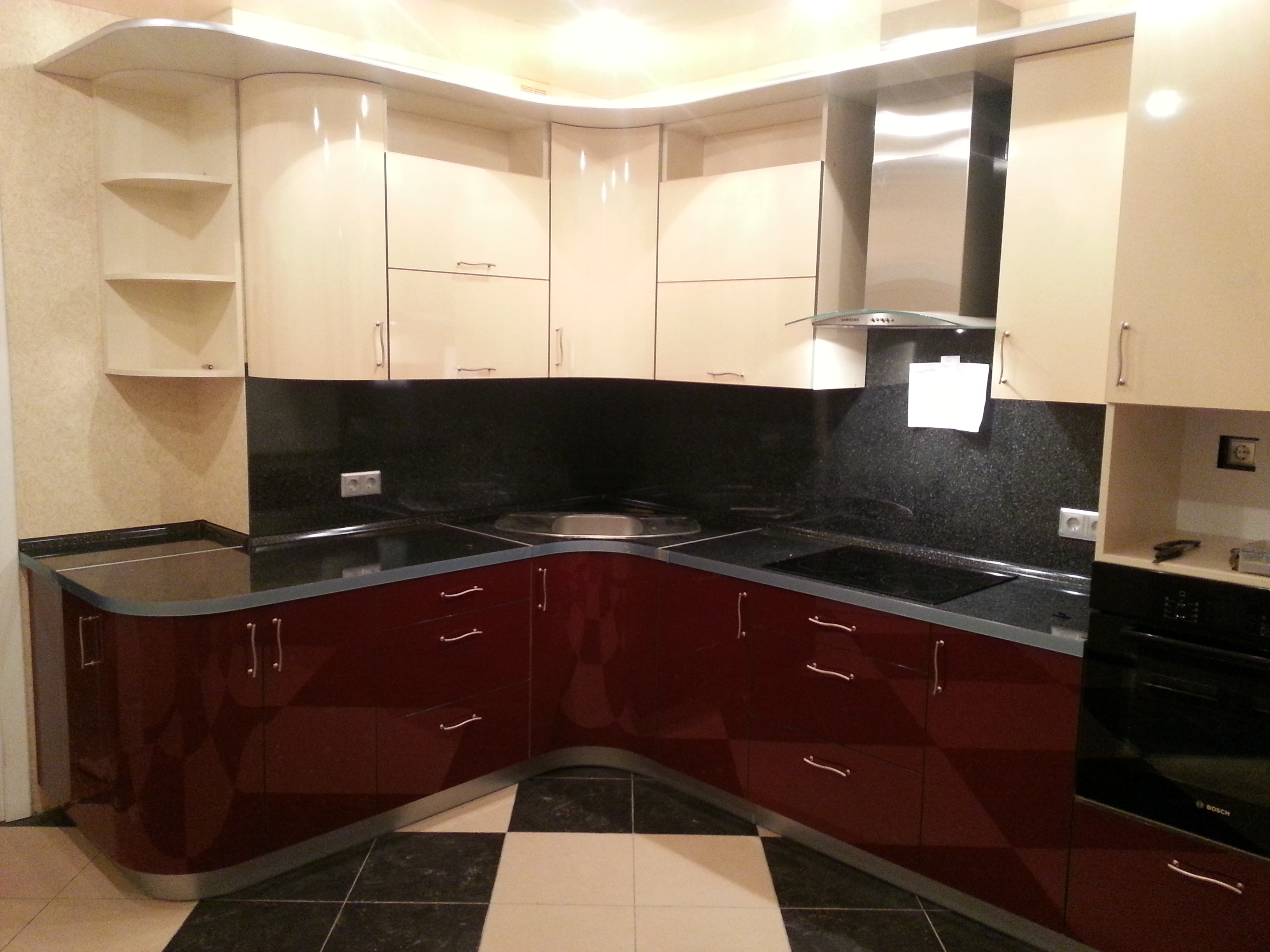Современная кухня из МДФ. Удлиненные верхние шкафы.