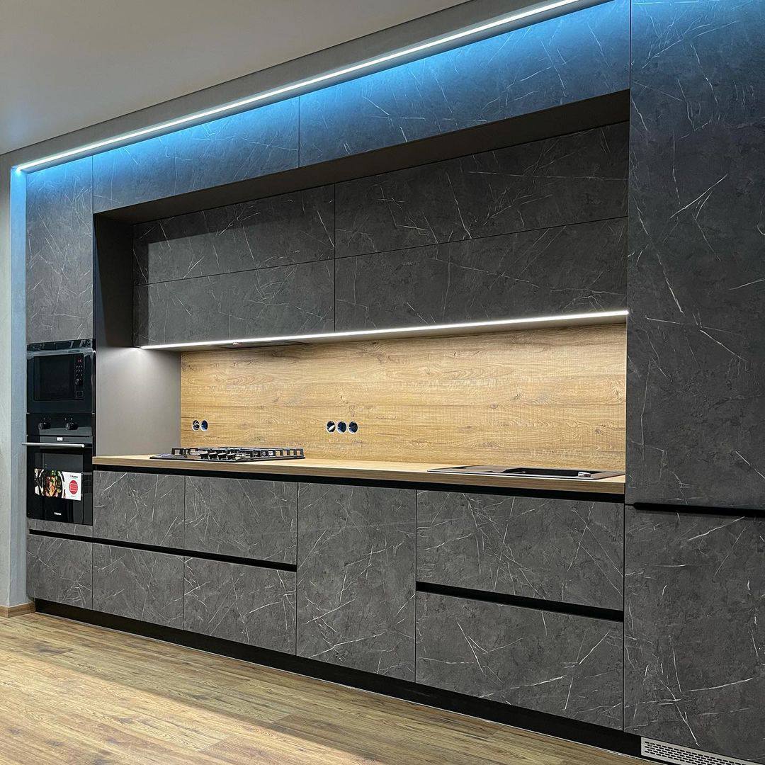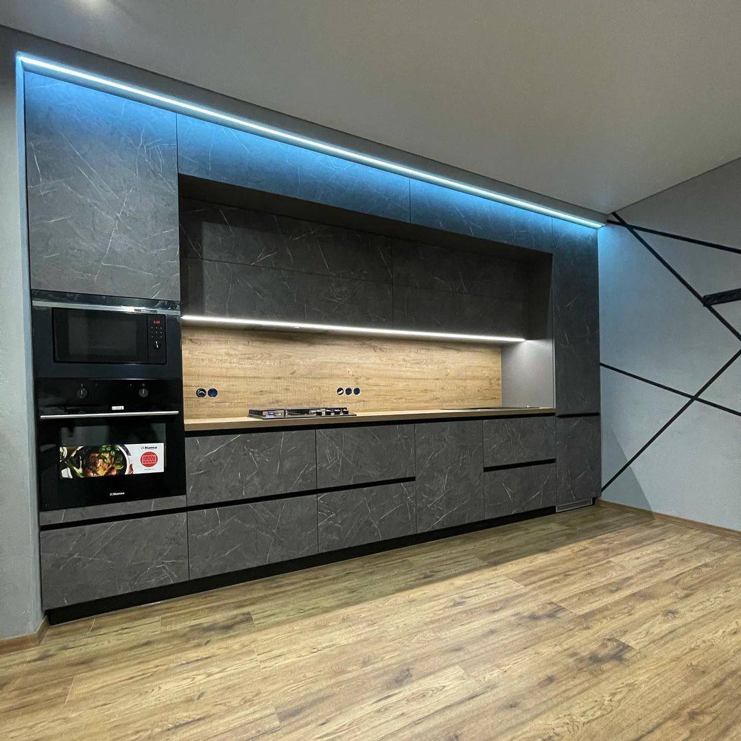 Кухня «Мемфис 2.8м» - Атласный серый/Черный трюфель