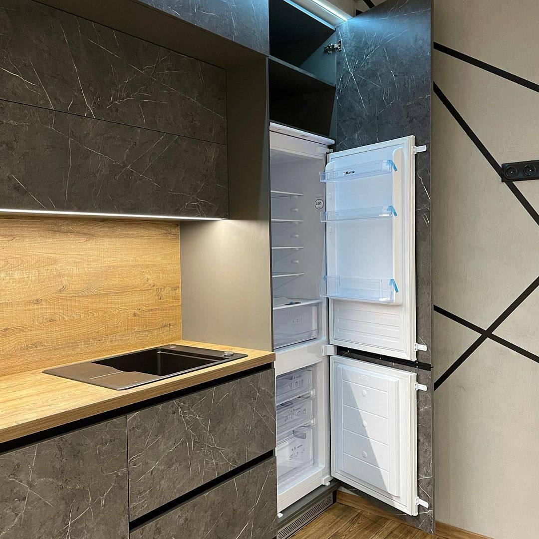 Материал: Пленочный МДФ, Шпон. Столешница: Компакт-плита, 12 мм.