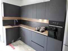 Минималистичные матовые фасады в сером цвете без ручек.