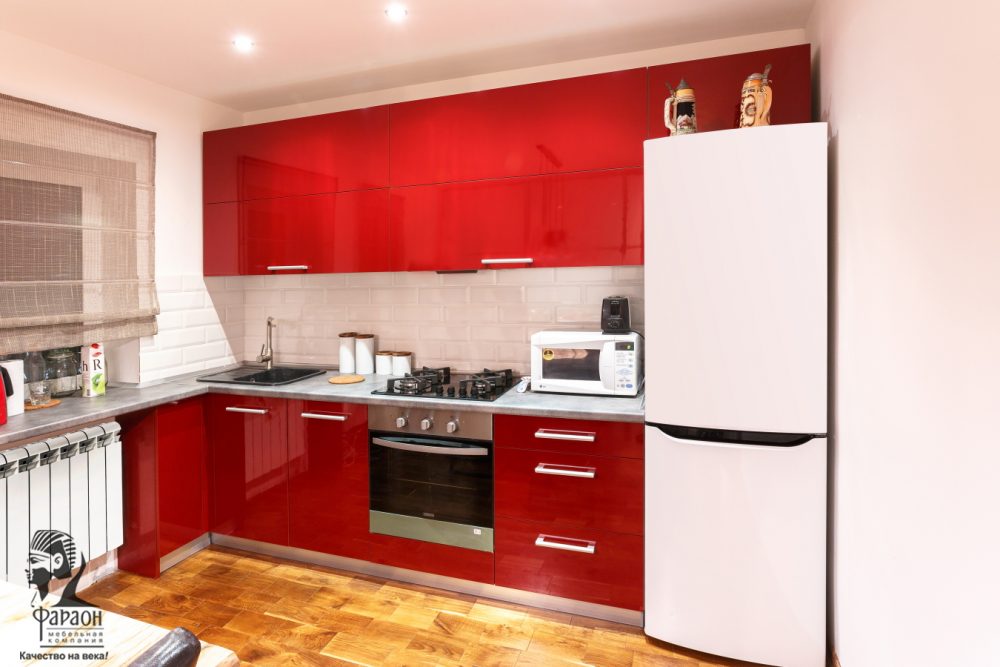 Кухня угловая с пластиковыми фасадами и встроенной подсветкой