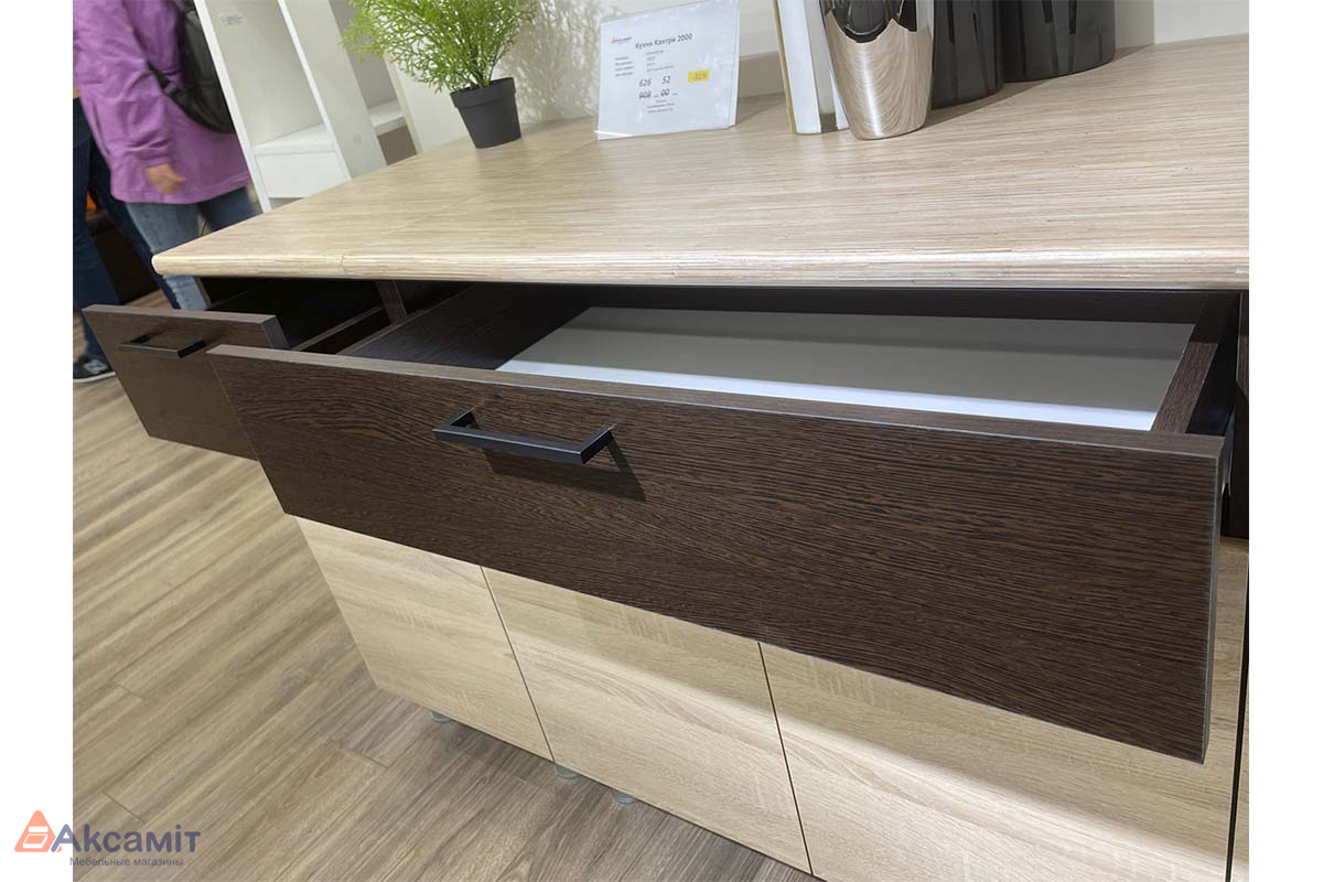 - Ширина кухонного гарнитура 2м, бытовая техника не учитывается.