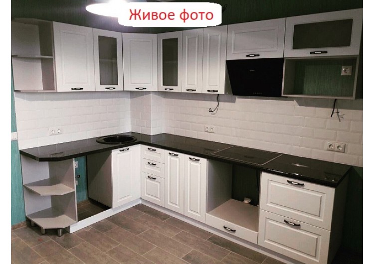 Материал корпуса: ЛДСП. Материал столешницы: постформинг. Материал фасада: МДФ. Вставки из стекла