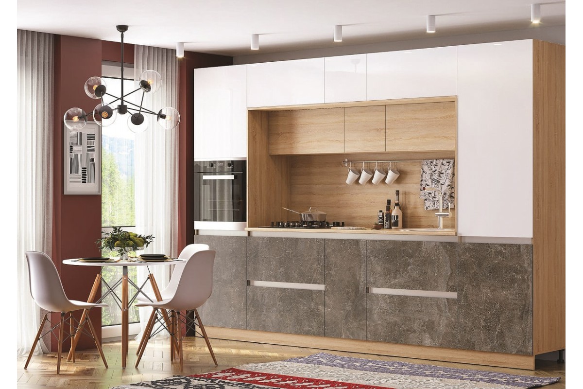 код 146720Ширина кухни: 3200 мм. Материал: ЛДСП (Kronospan).