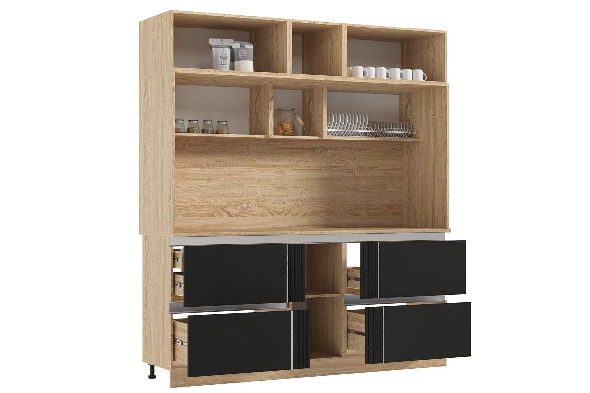 Габаритный гарнитур с буфетом и шкафом для встроенной техники.