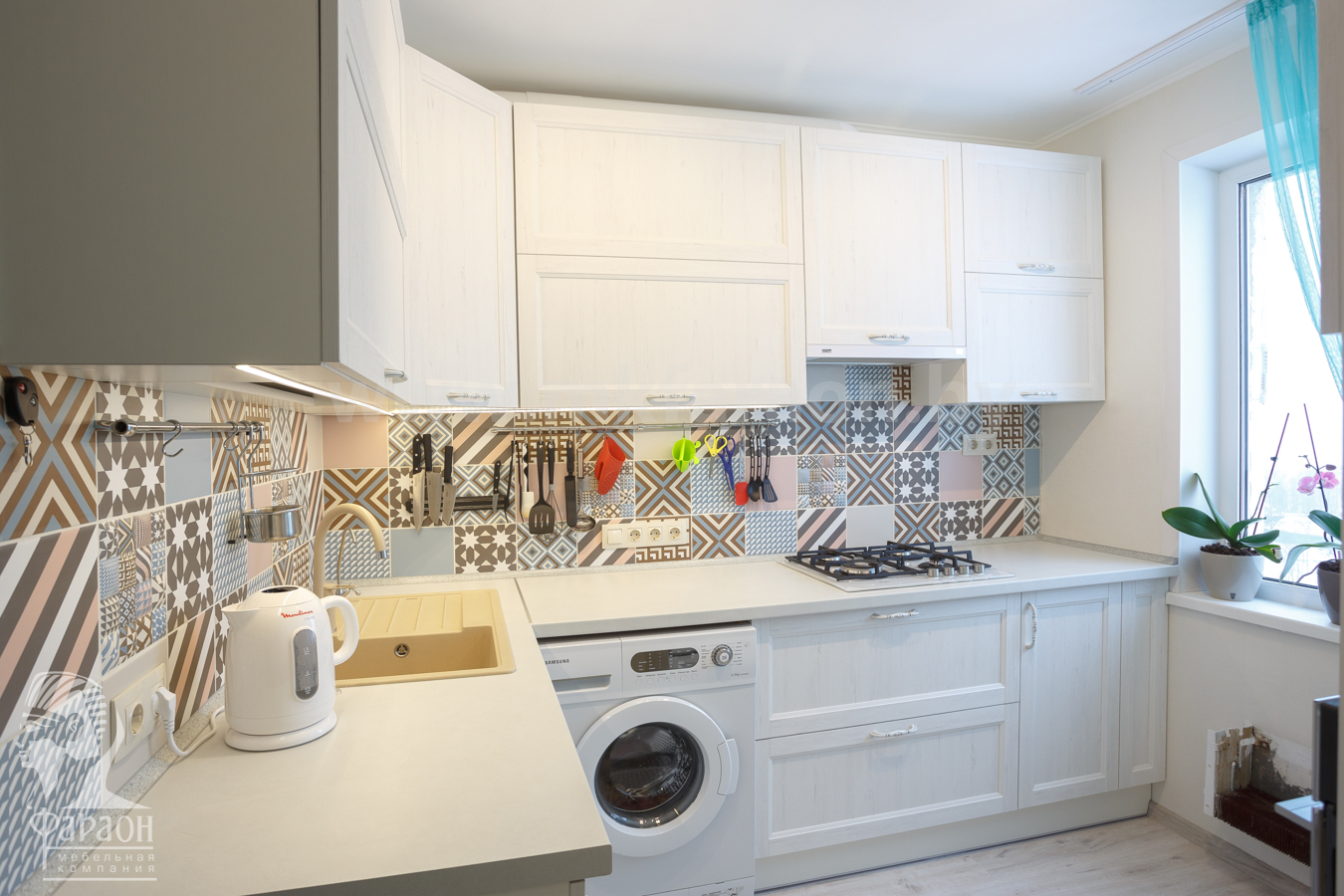 Ниши для встраиваемой техники, скинали с фотопечатью, удобная фурнитура.
