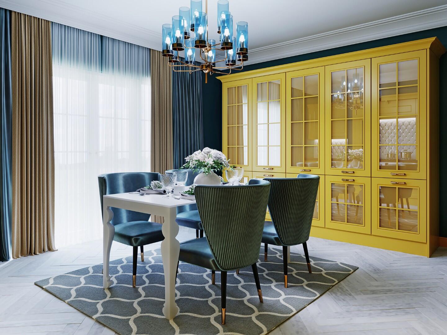 Яркая, стильная, просторная кухня-столовая, с элементами которые позволят ощутить всю торжественность момента. Огромный шкаф-витрина особая гордость, благодаря ему создается впечатление приема во дворце.