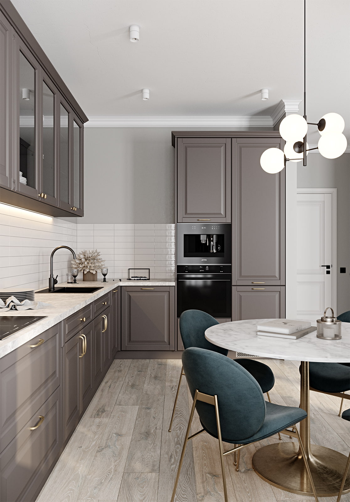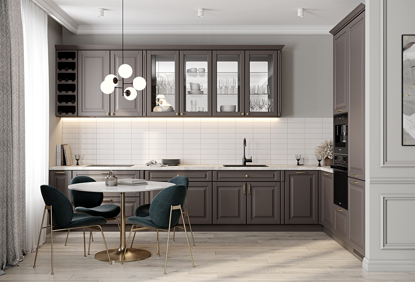 Фасады клайд (мдф / пвх), цвет ncs s 6005-y80r матовый столешница пластик hpl, 38 мм, декор римский камень