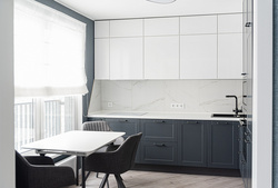 Темные и светлые фасады из пленочной МДФ. Ширина кухни 200 см.