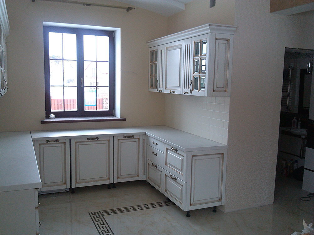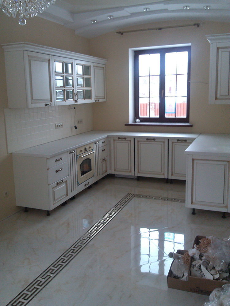 Данный кухонный гарнитур не потерпит тесных помещений. Ведь дизайн в стиле ампир требует достаточного пространства для демонстрации своих изящных форм, тиснений и окантовок, фактура которых пускает свои корни еще во времена античности.
