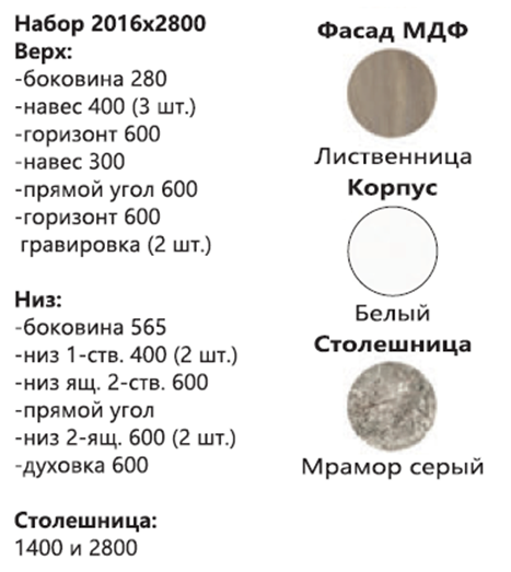 Материал фасада и корпуса: ЛДСП 16 мм. Ширина кухни 160 см.