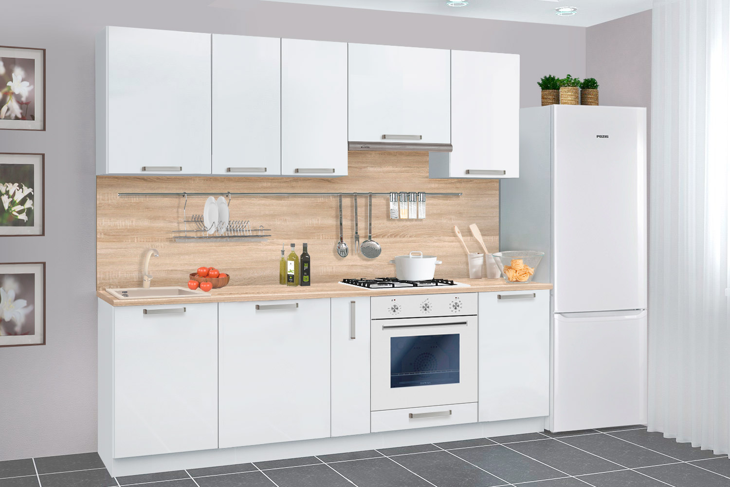Кухня «Нувель 2.0м» - Вариант 1 - Белый софт