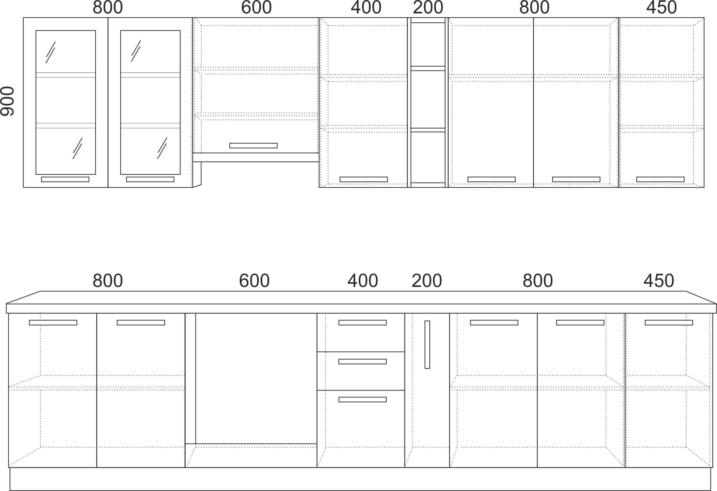Материал фасада и корпуса: ЛДСП 16 мм. Ширина кухни 140 см.