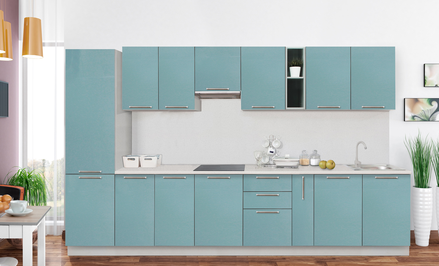Материал фасада и корпуса: ЛДСП 16 мм. Ширина кухни 200 см.
