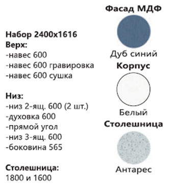 Материал корпуса и фасадов – ЛДСП. Ширина кухни 190 см.