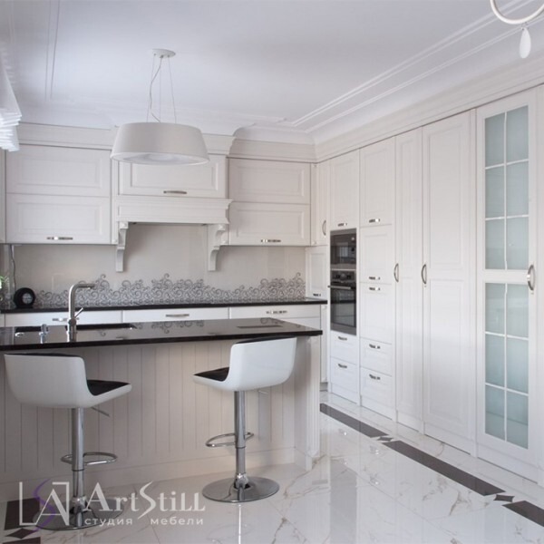 - Нежный белый цвет гарнитура придает помещению свежесть, делая его визуально более просторным.