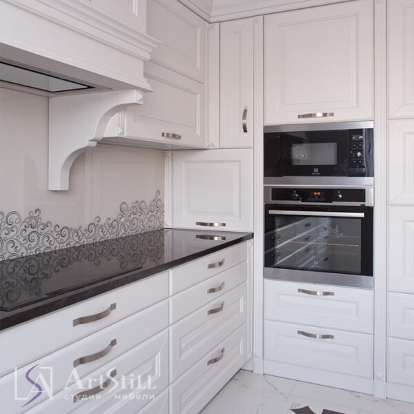 Фасады: МДФ белый матовый, ДСП Egger. Фурнитура: BLUM (Австрия).