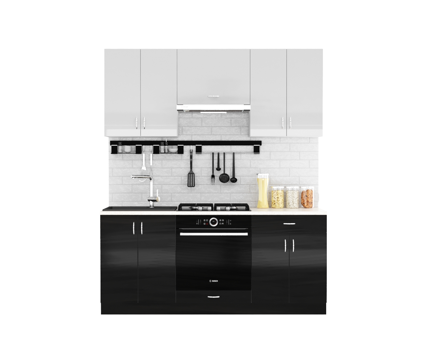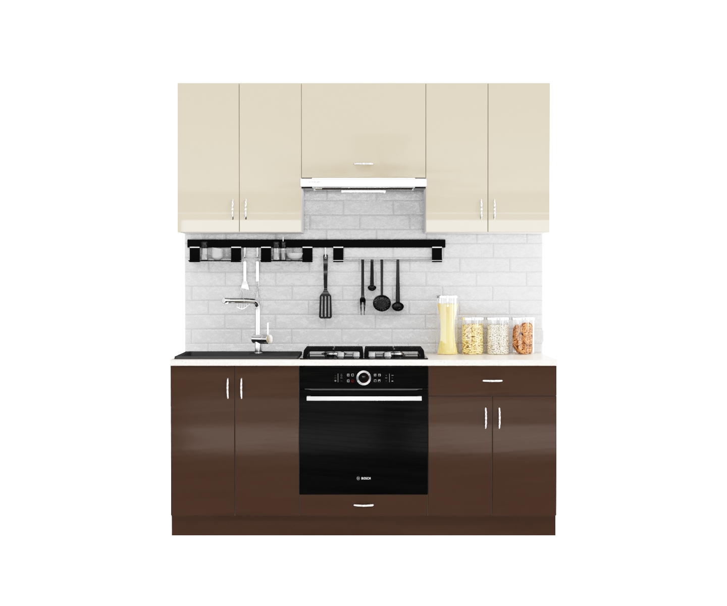 Линейная модульная кухня с комбинацией цветов 069К