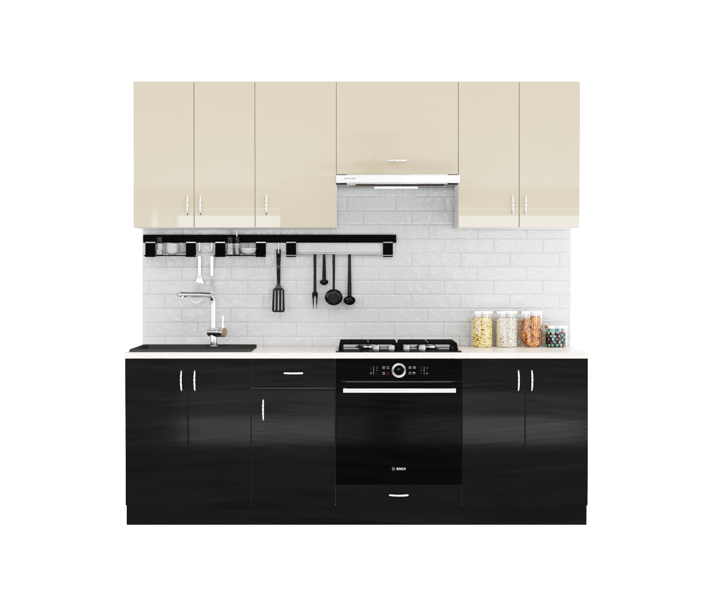 Фасады: выполнены из глянцевого МДФ 18 мм. «Evogloss», все видимые торцы обработаны кромкой ПВХ толщиной 0,6 мм.