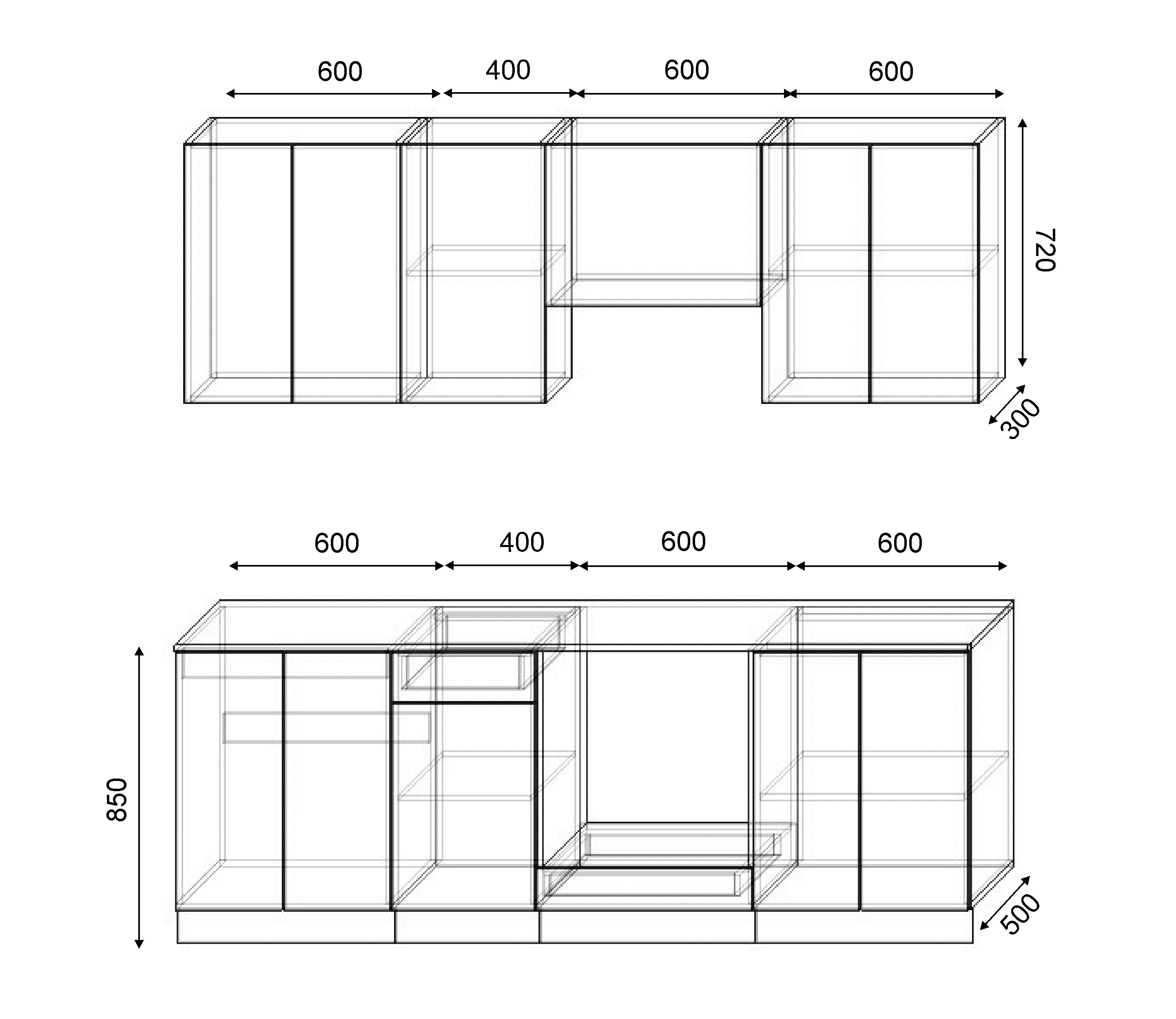Варианты модулей: в данной коллекции представлены следующие размеры шкафчиков: 300мм, 400мм, 500мм, 600мм, 700мм, 800мм.