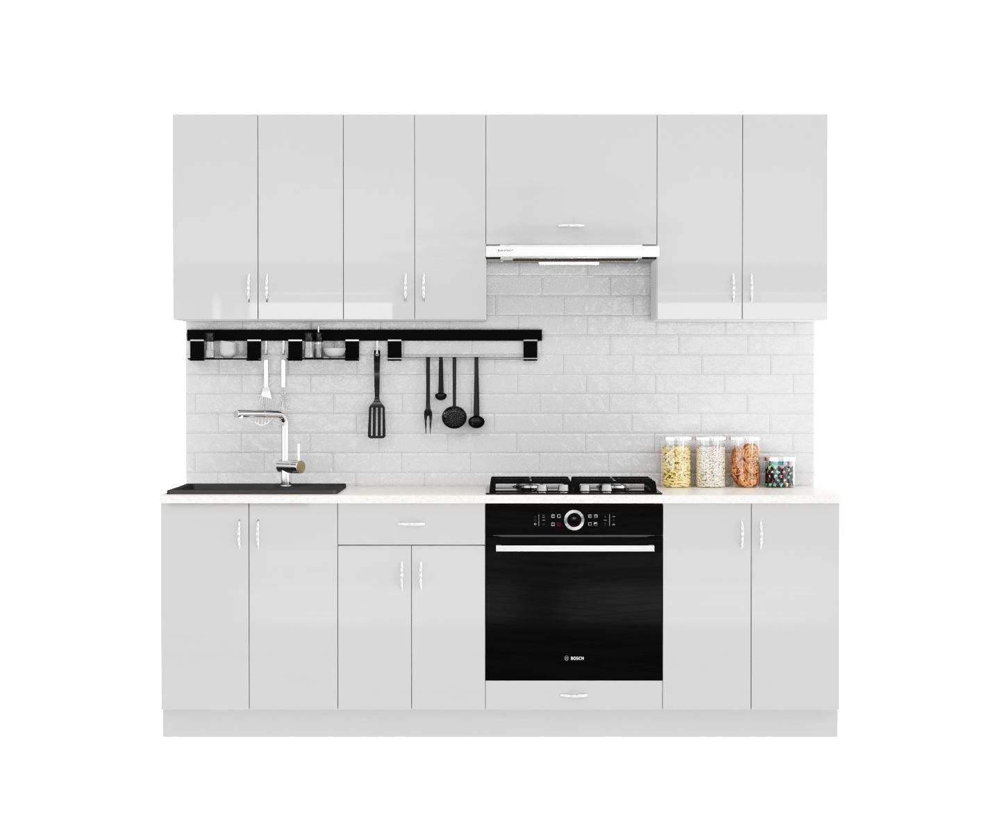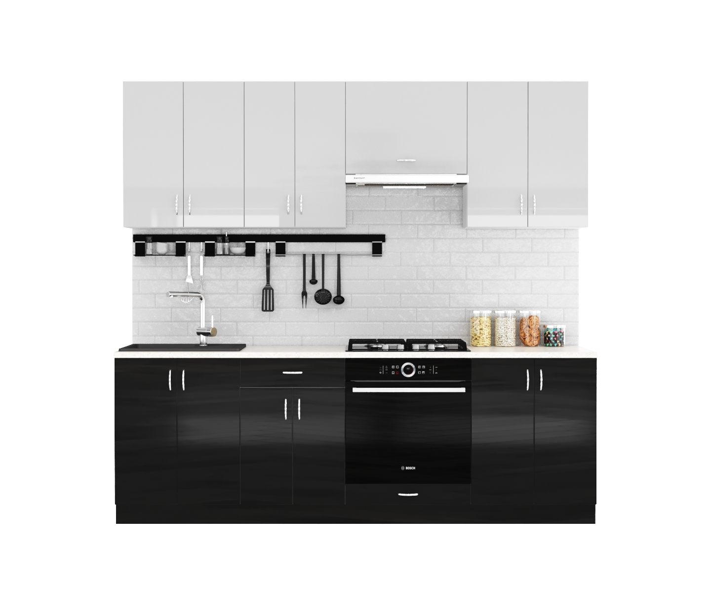 Фасады мебели изготовлены из глянцевого итальянского пластика.