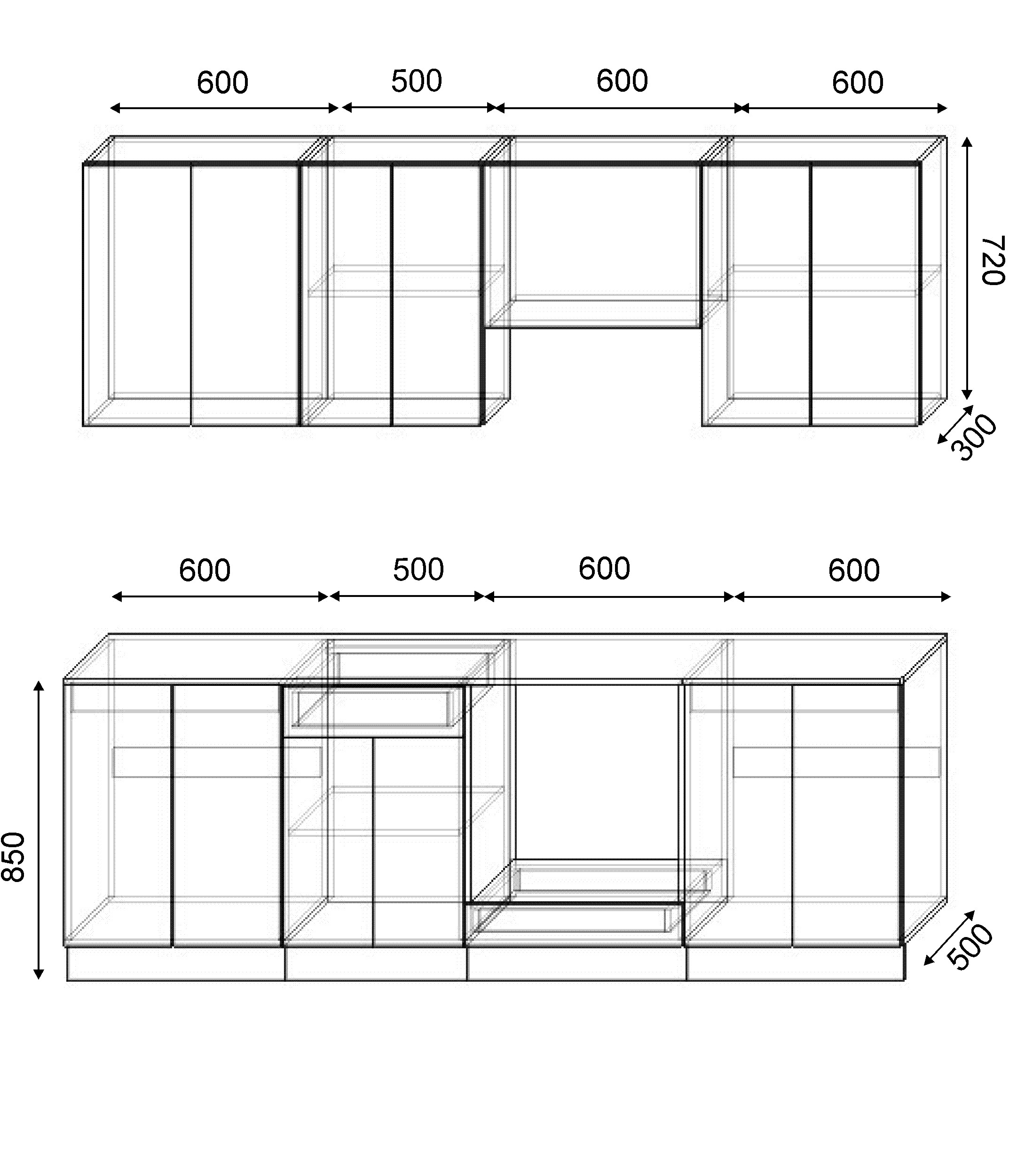 Варианты модулей: в данной коллекции представлены следующие размеры шкафчиков: 300мм, 400мм, 500мм, 600мм, 700мм, 800мм.