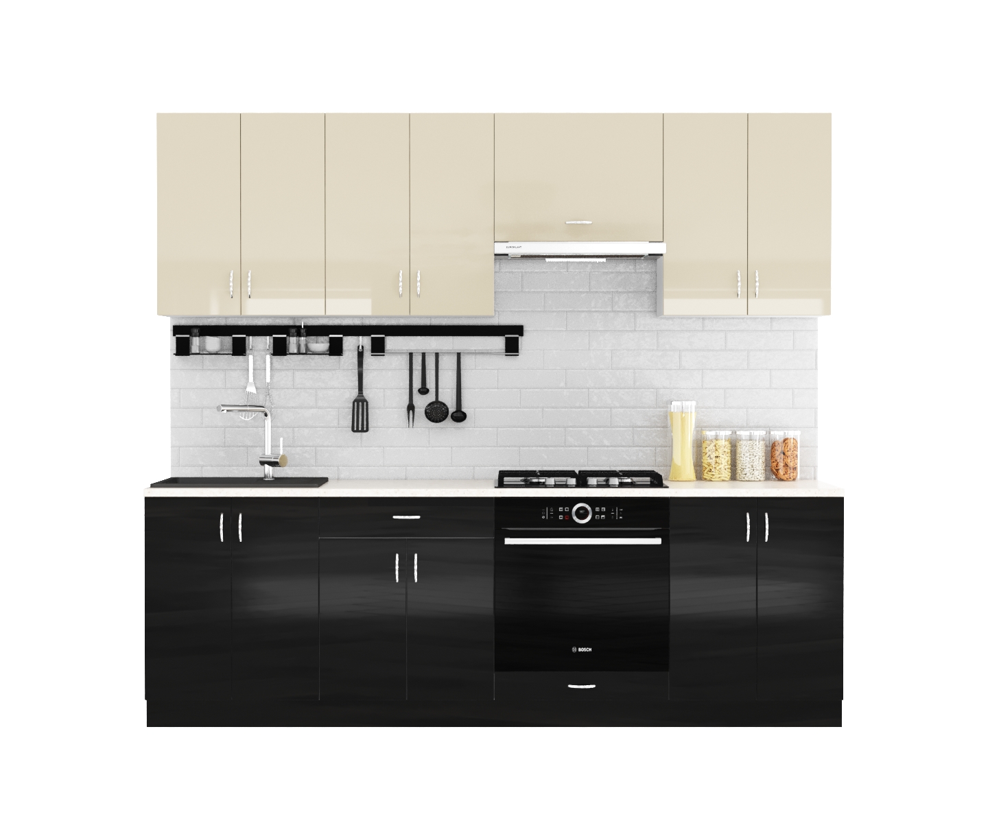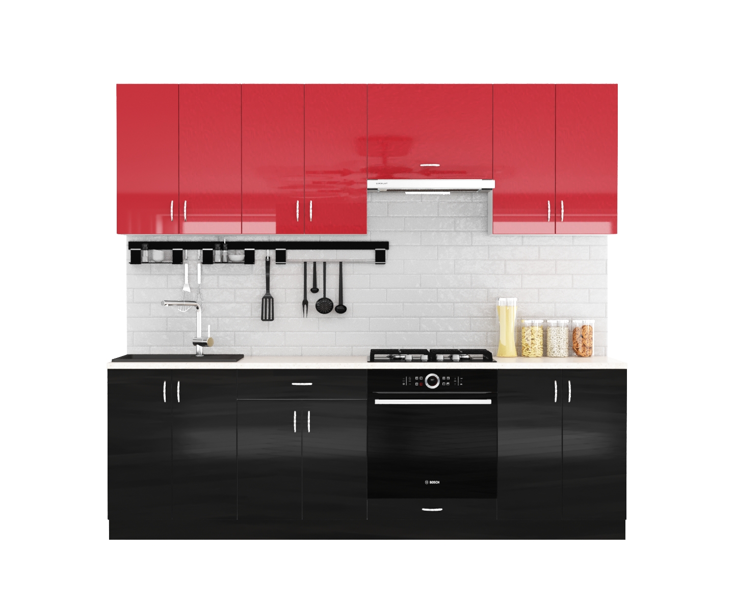 Фасады: выполнены из глянцевого МДФ 18 мм. «Evogloss», все видимые торцы обработаны кромкой ПВХ толщиной 0,6 мм.