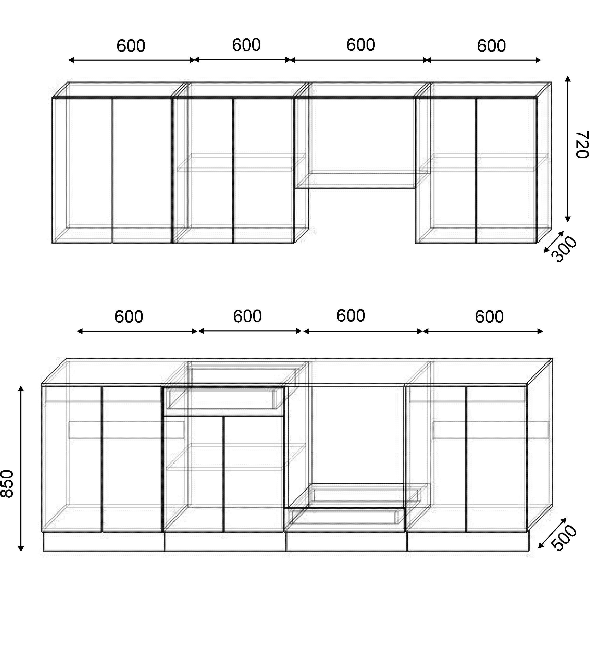 Варианты модулей: в данной коллекции представлены следующие размеры шкафчиков: 300мм, 400мм, 500мм, 600мм, 700мм, 800мм.