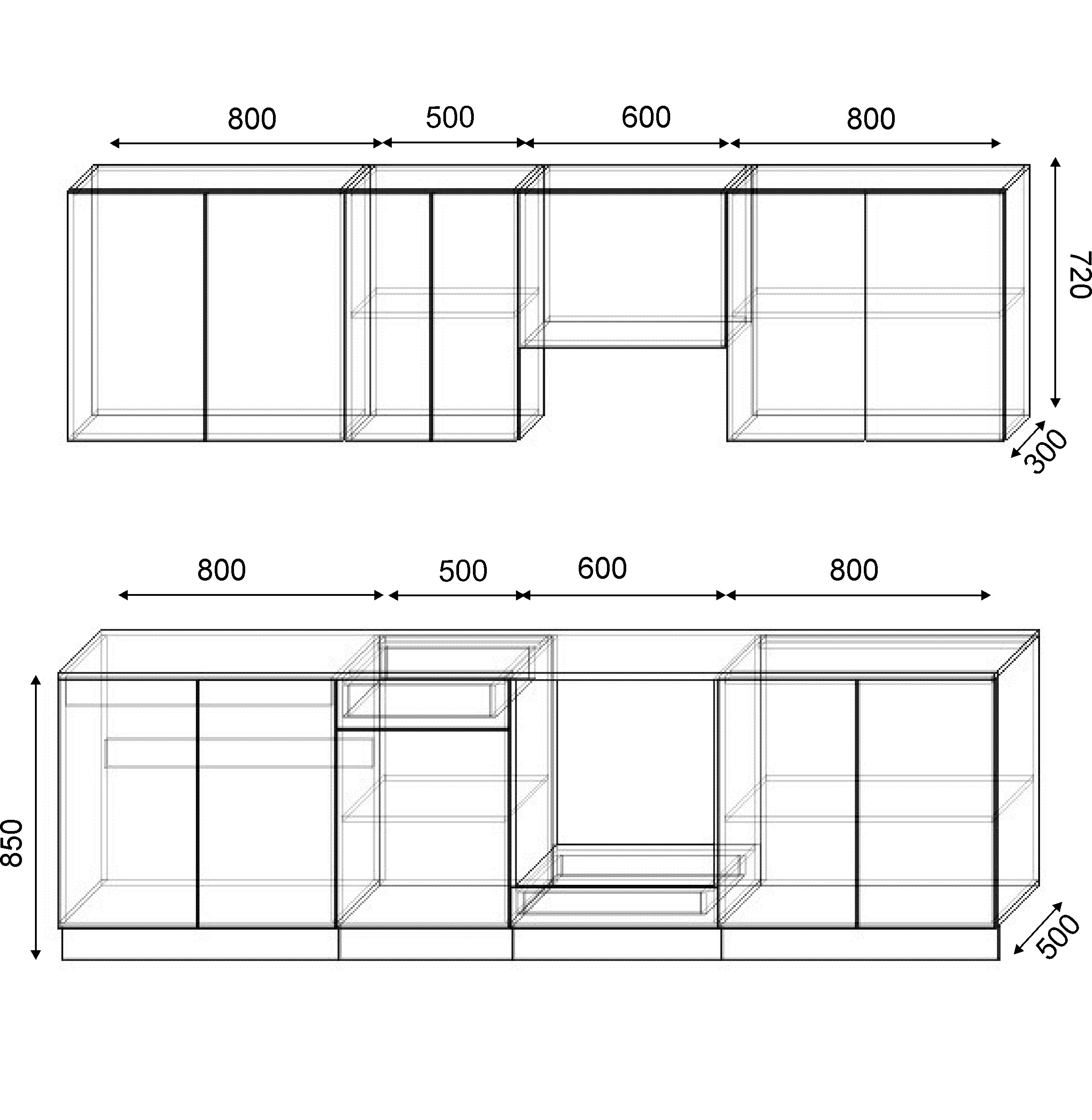 Варианты модулей: в данной коллекции представлены следующие размеры шкафчиков: 300мм, 400мм, 500мм, 600мм, 700мм, 800мм.
