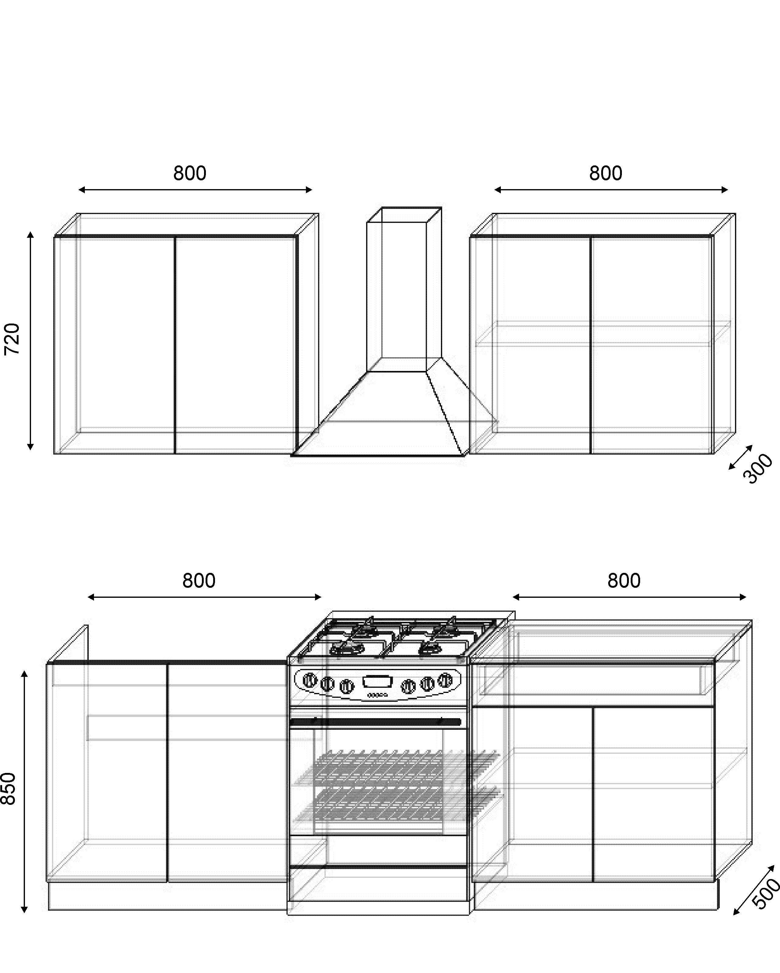 Варианты модулей: в данной коллекции представлены следующие размеры шкафчиков: 300мм, 400мм, 600мм, 800мм.