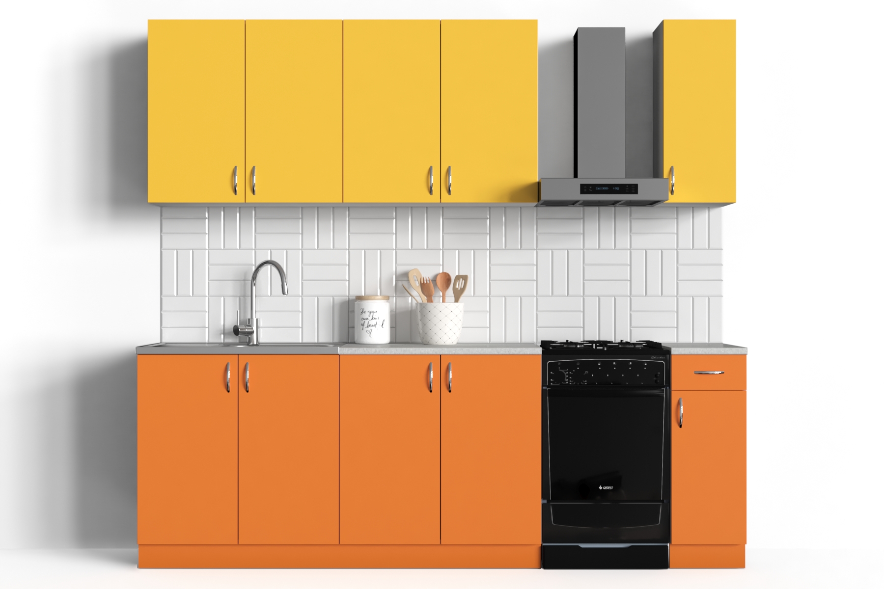Кухня прямая «Агата» 2.2 м Ясень шимо темный - Оранжевый