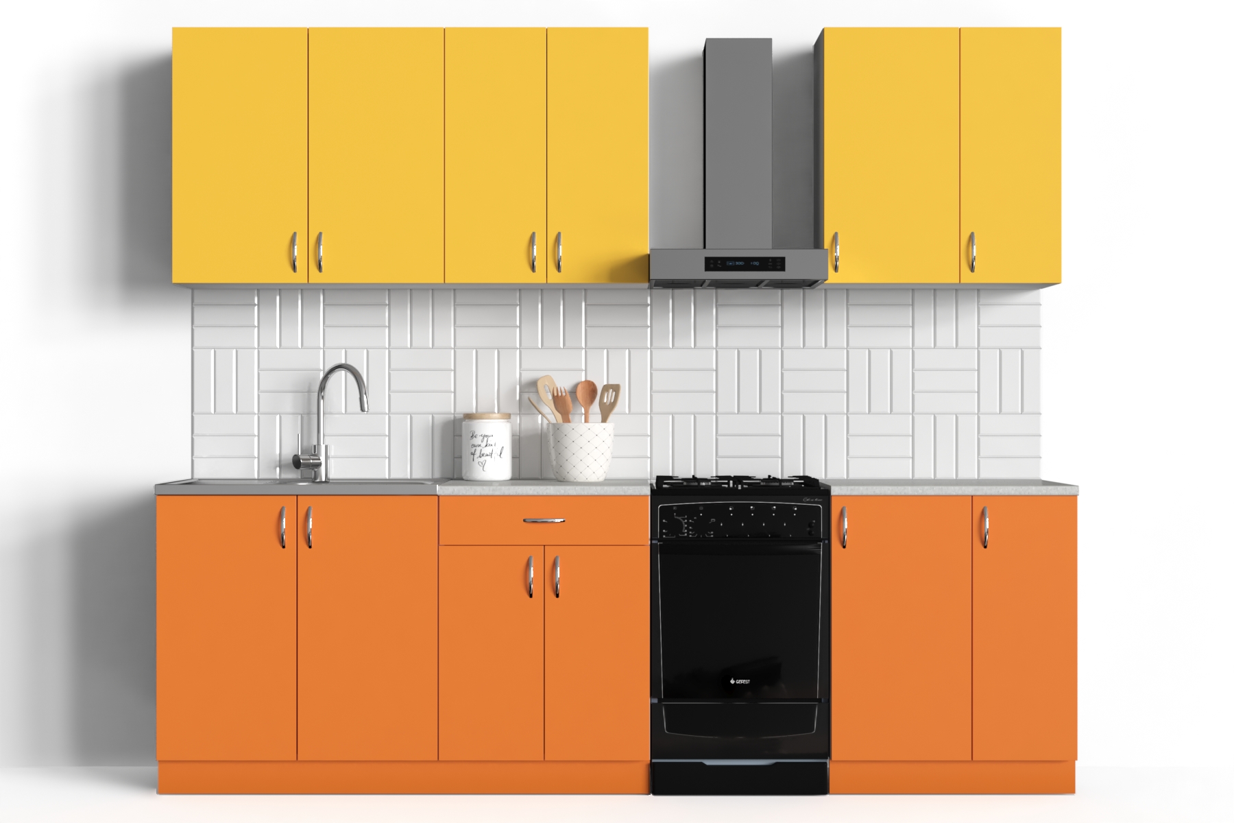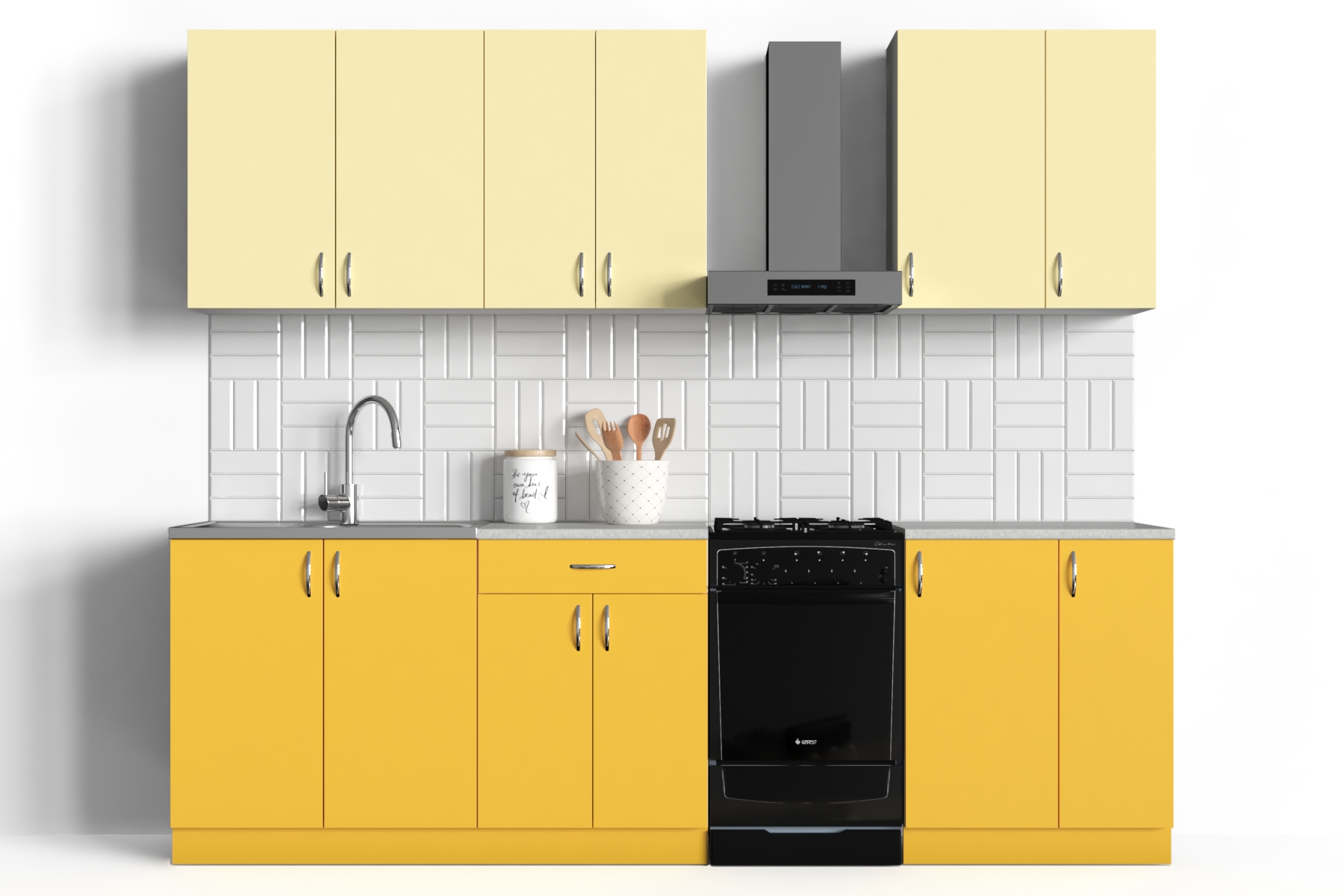 Удобные ручки черного цвета. Желтые фасады.