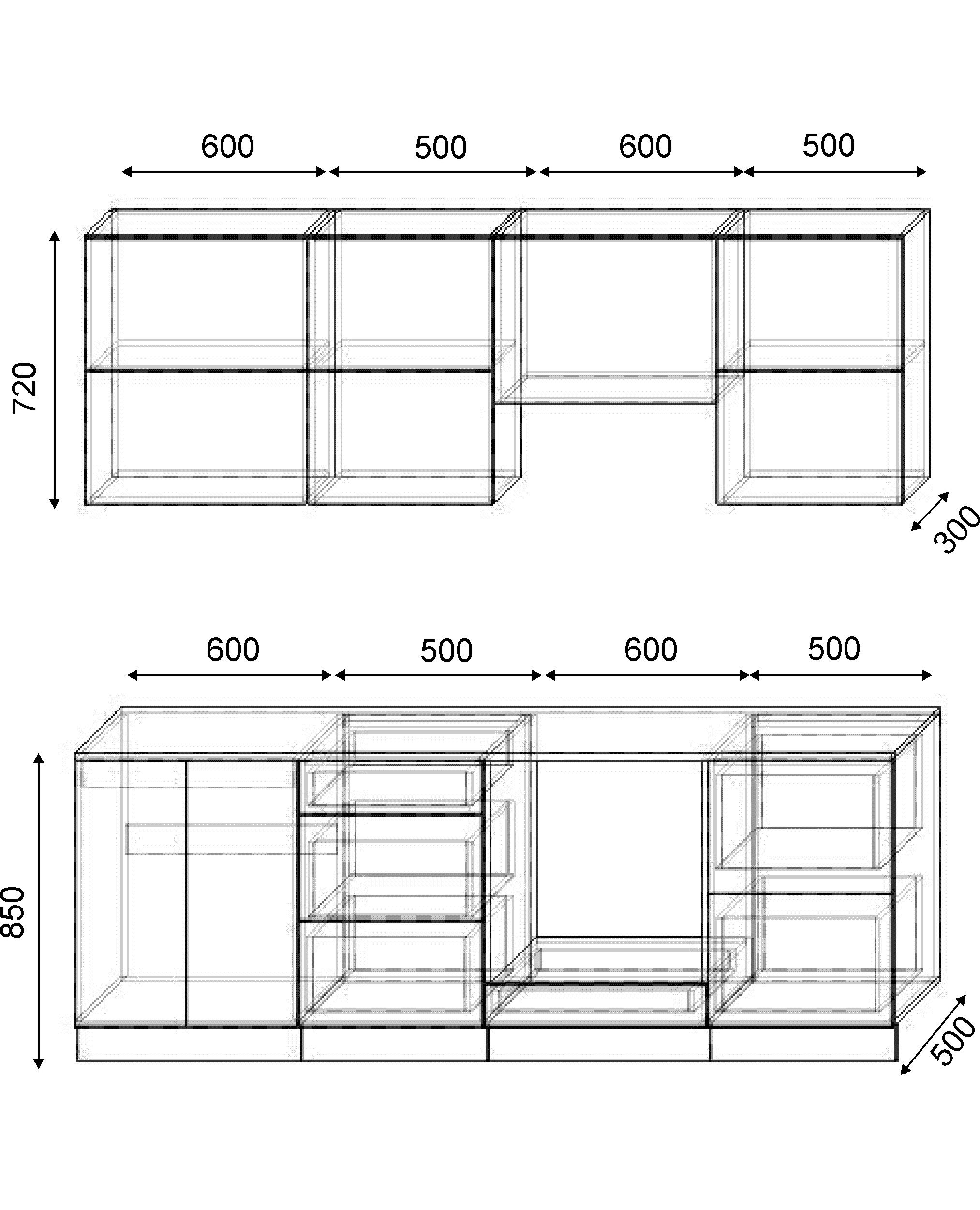 Варианты модулей: в данной коллекции представлены следующие размеры шкафчиков: 500мм, 600мм, 700мм, 800мм.