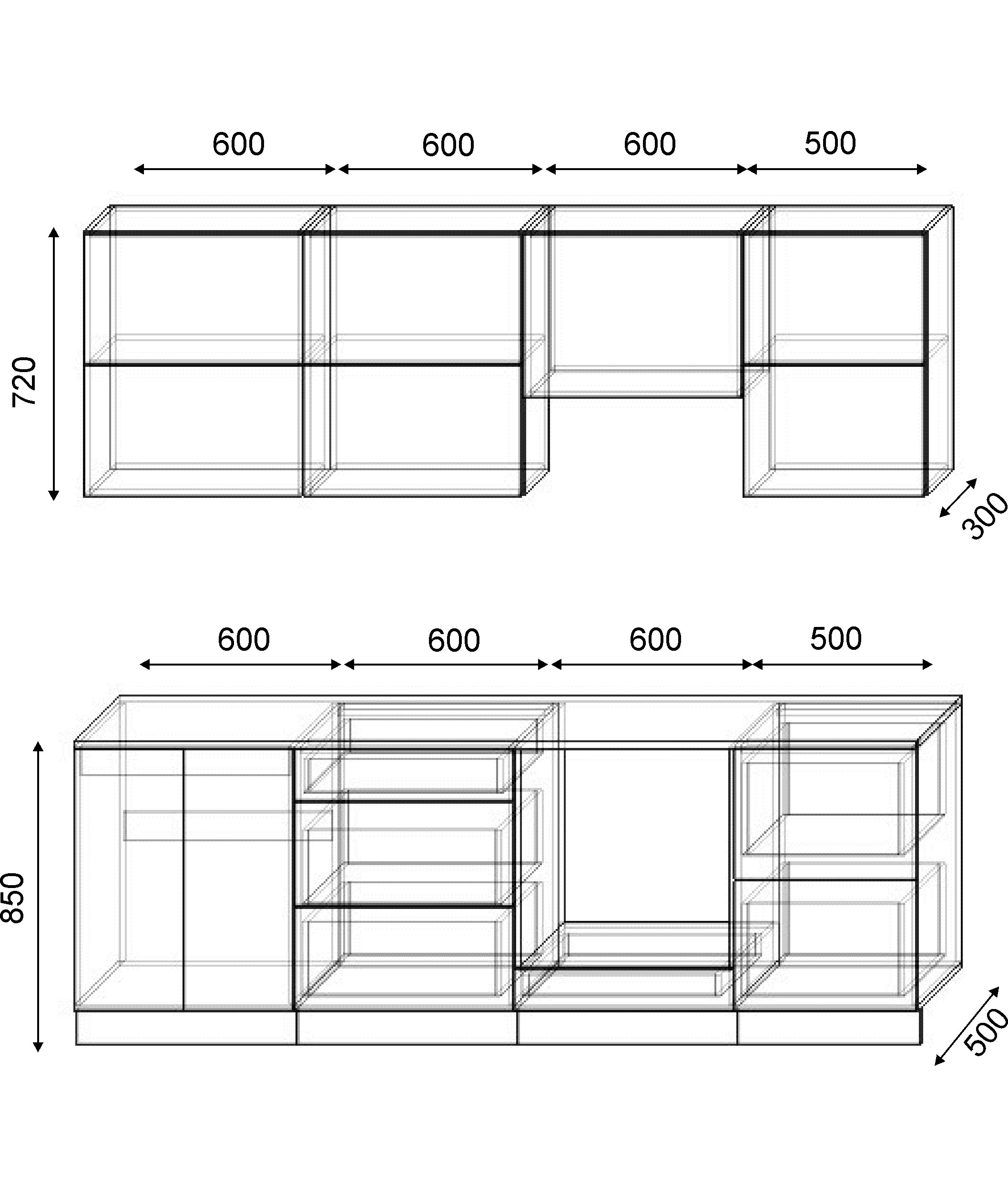 Варианты модулей: в данной коллекции представлены следующие размеры шкафчиков: 500мм, 600мм, 700мм, 800мм.