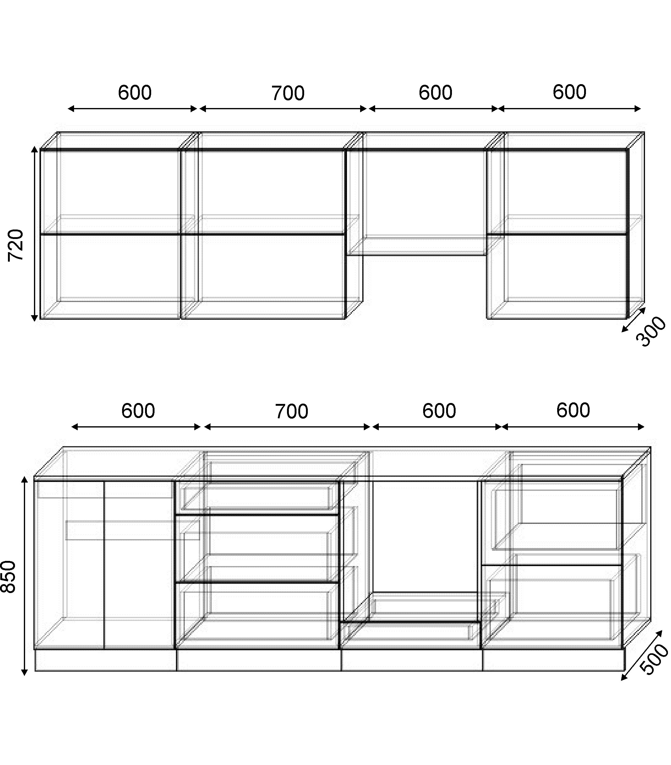 Варианты модулей: в данной коллекции представлены следующие размеры шкафчиков: 500мм, 600мм, 700мм, 800мм.
