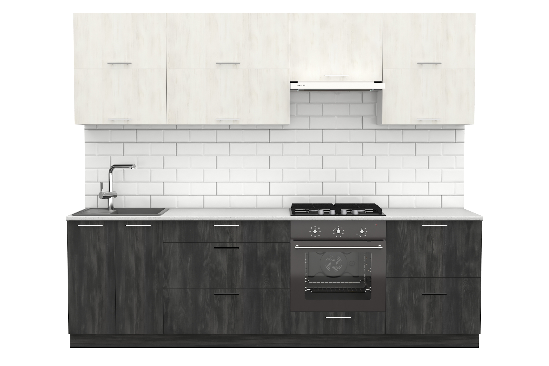 Линейная кухня в черно-белом цвете