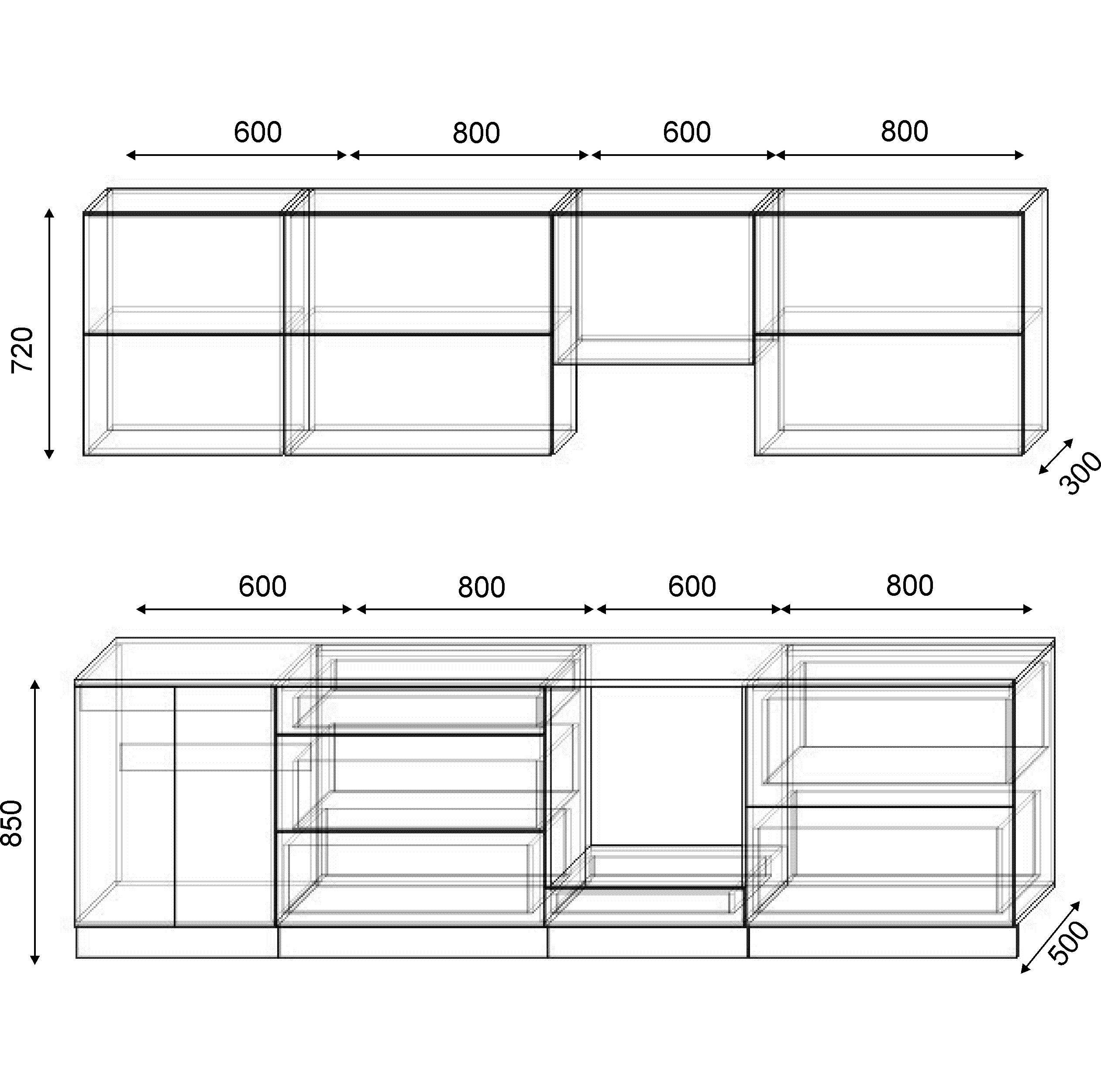 Варианты модулей: в данной коллекции представлены следующие размеры шкафчиков: 500мм, 600мм, 700мм, 800мм.