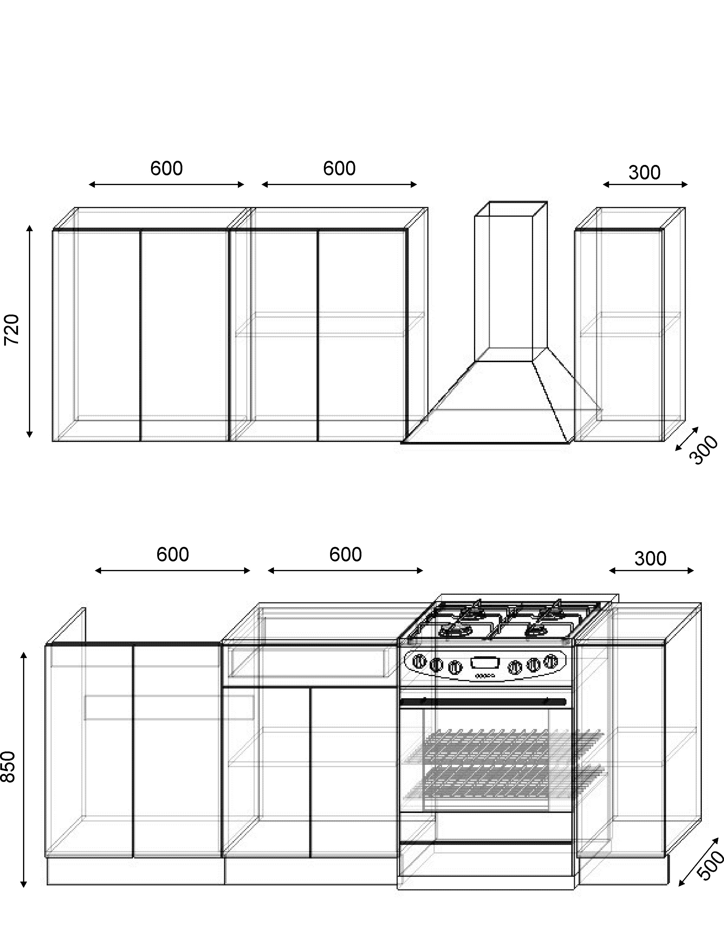 Варианты модулей: в данной коллекции представлены следующие размеры шкафчиков: 300мм, 400мм, 600мм, 800мм. В зависимости от размера кухонного гарнитура, варьируются размеры и функциональное содержание шкафчиков.