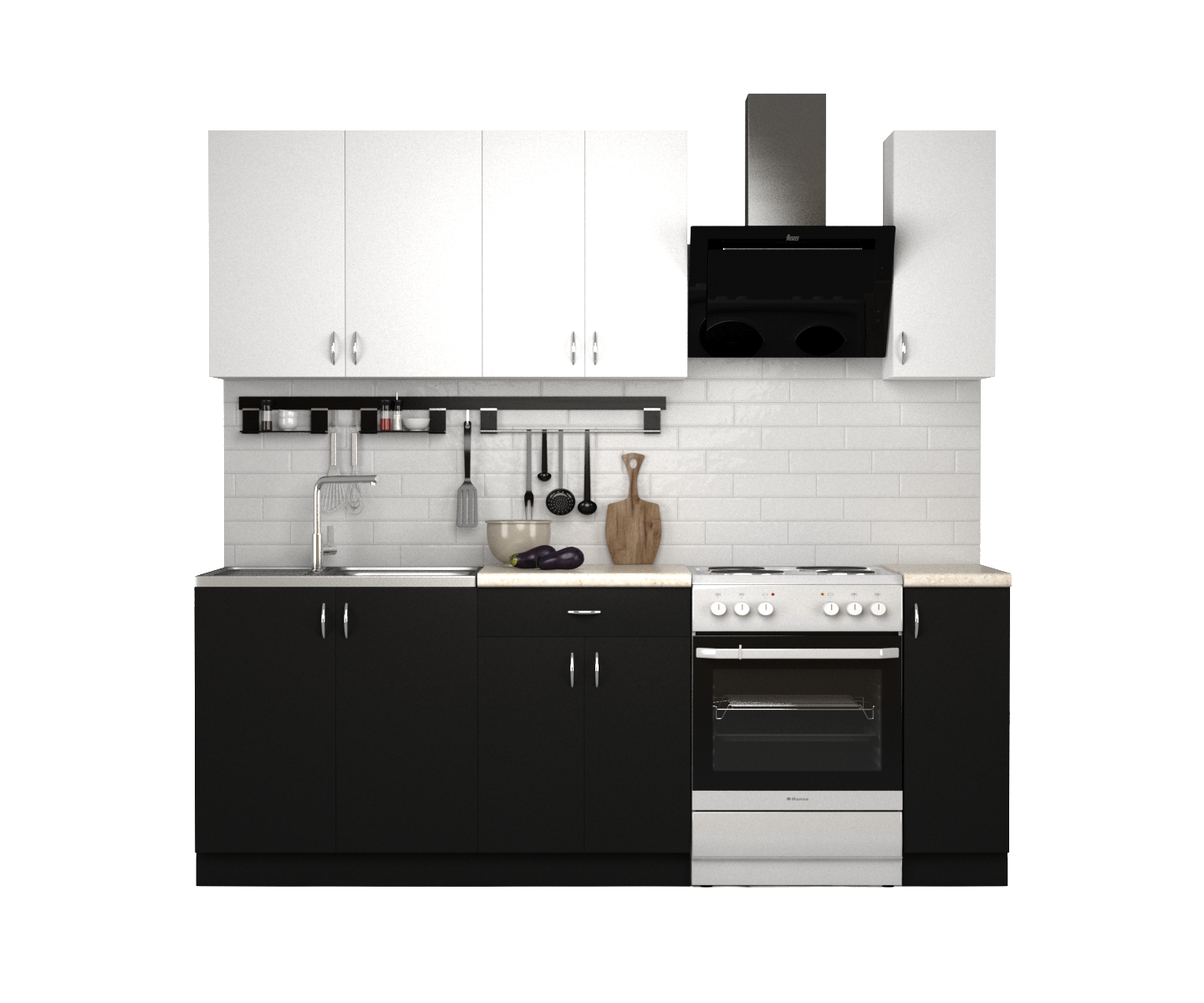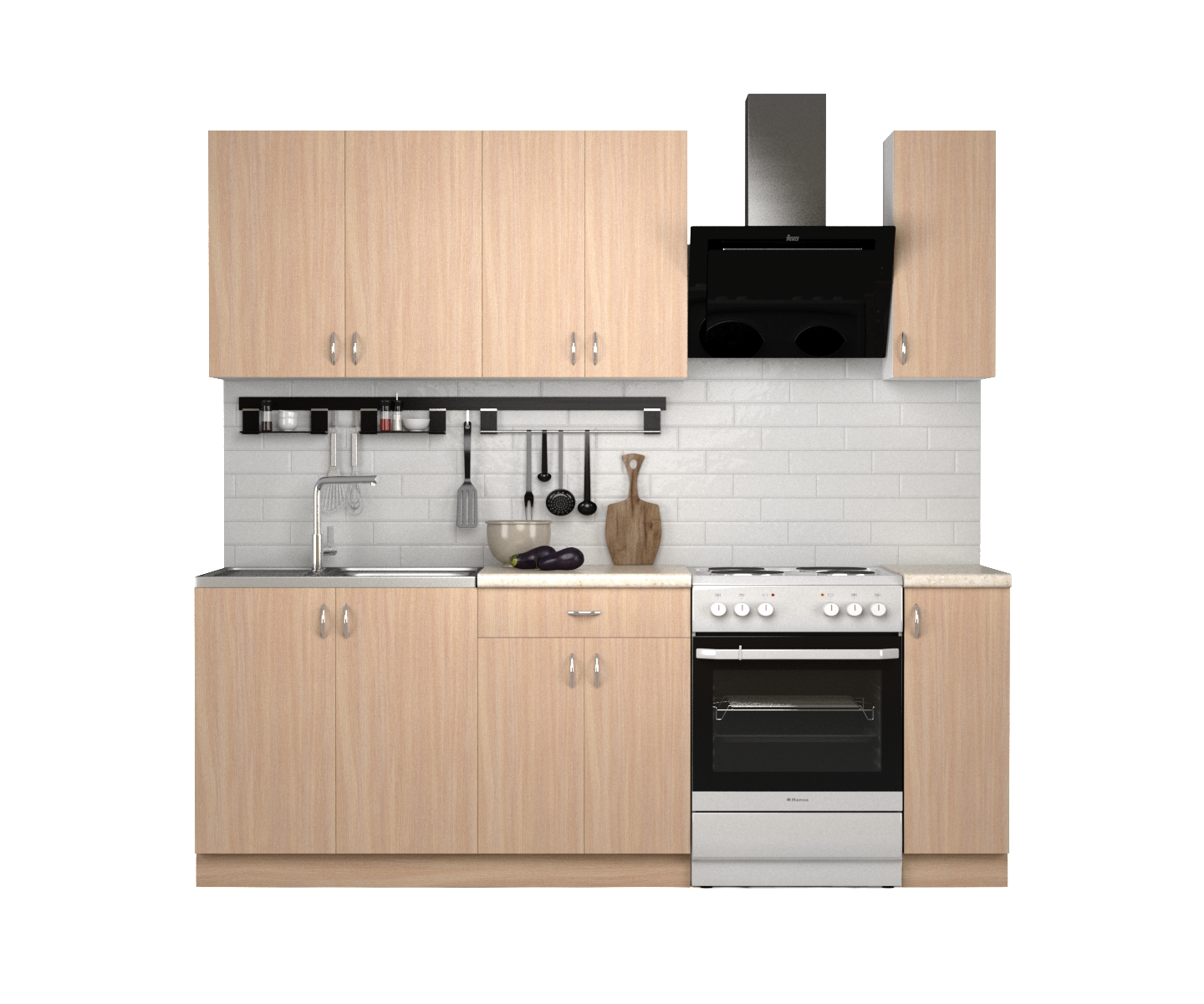 Вся фурнитура с доводчиками, столешницы подогнаны под стены.