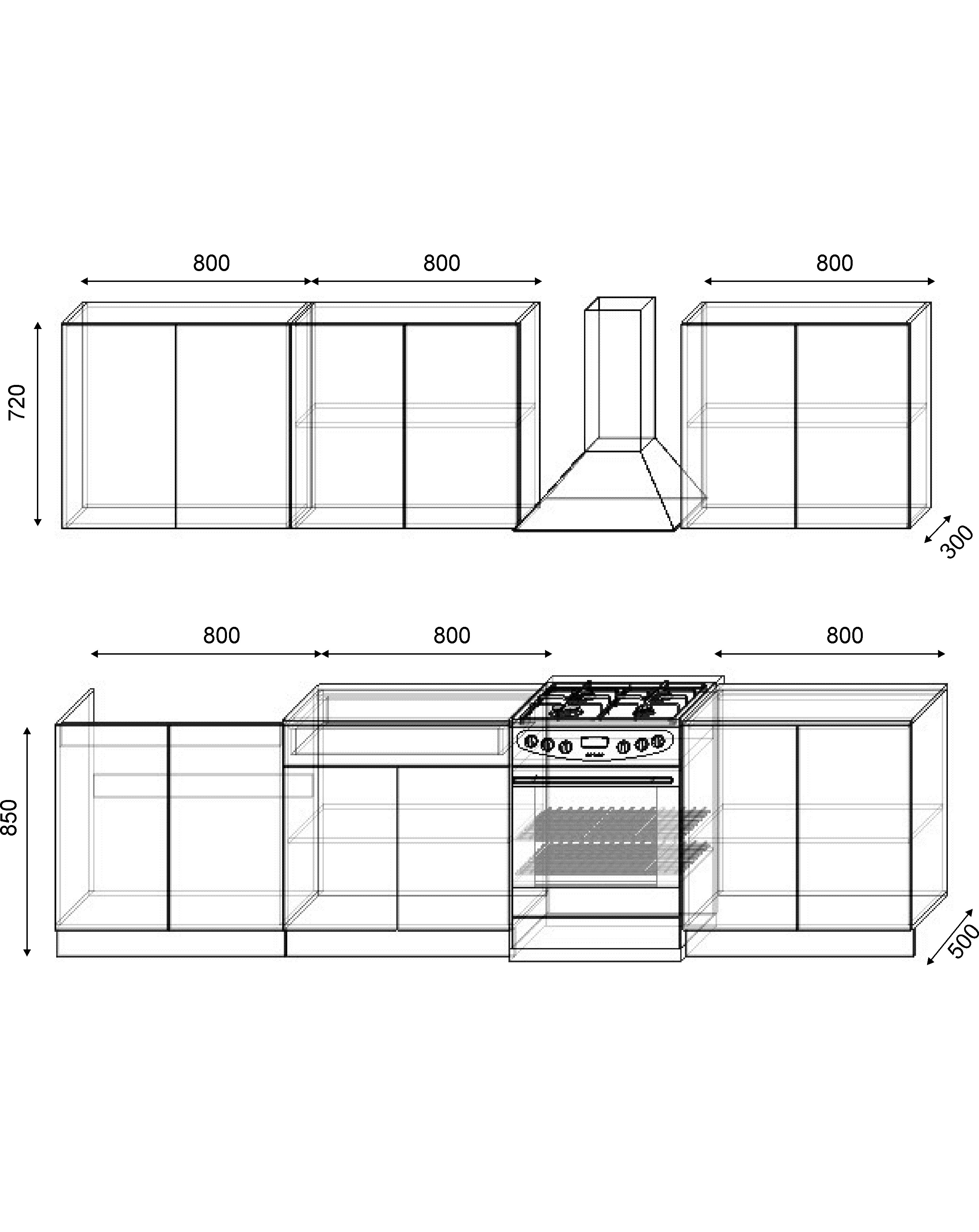Варианты модулей: в данной коллекции представлены следующие размеры шкафчиков: 300мм, 400мм, 600мм, 800мм. В зависимости от размера кухонного гарнитура, варьируются размеры и функциональное содержание шкафчиков.