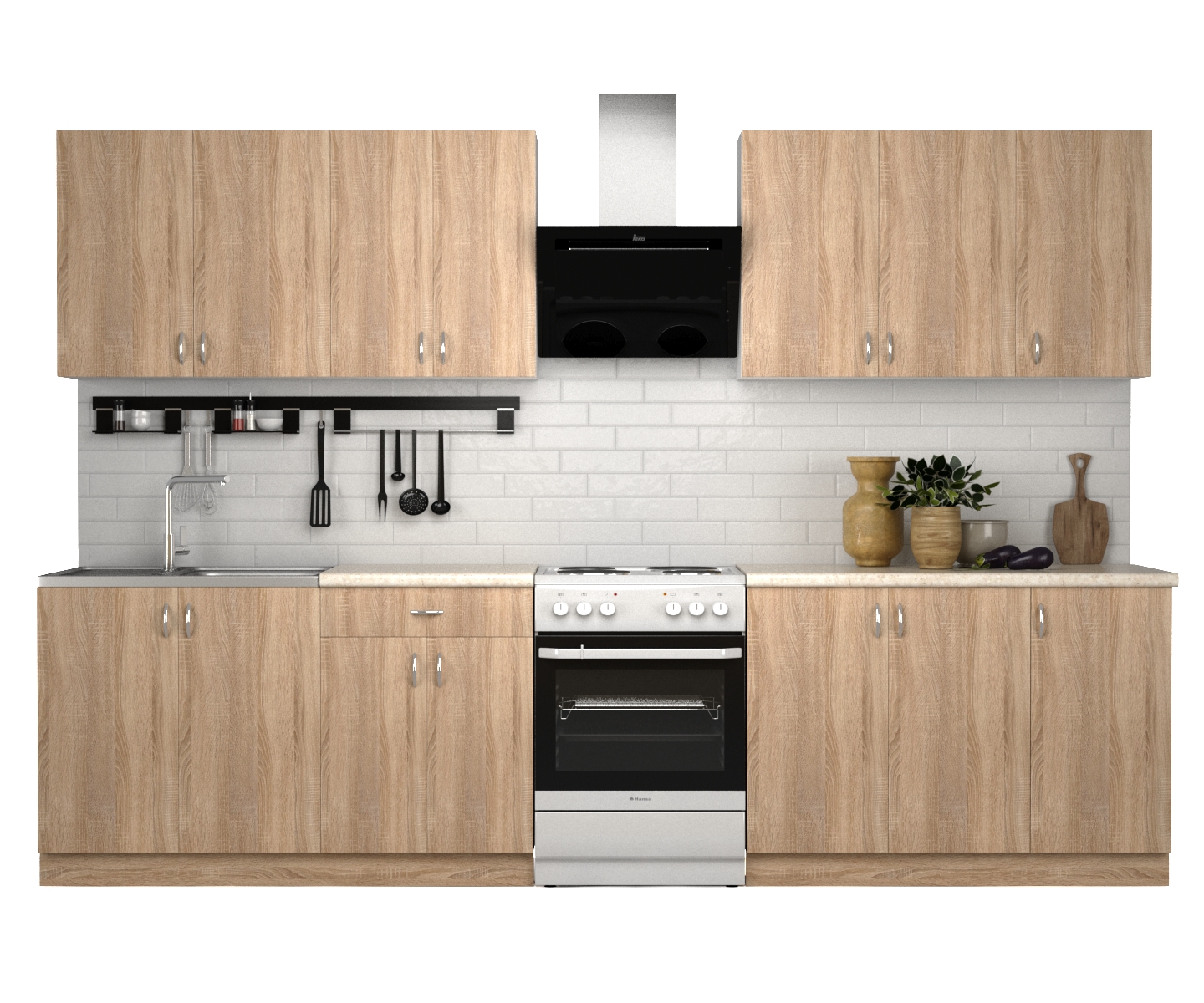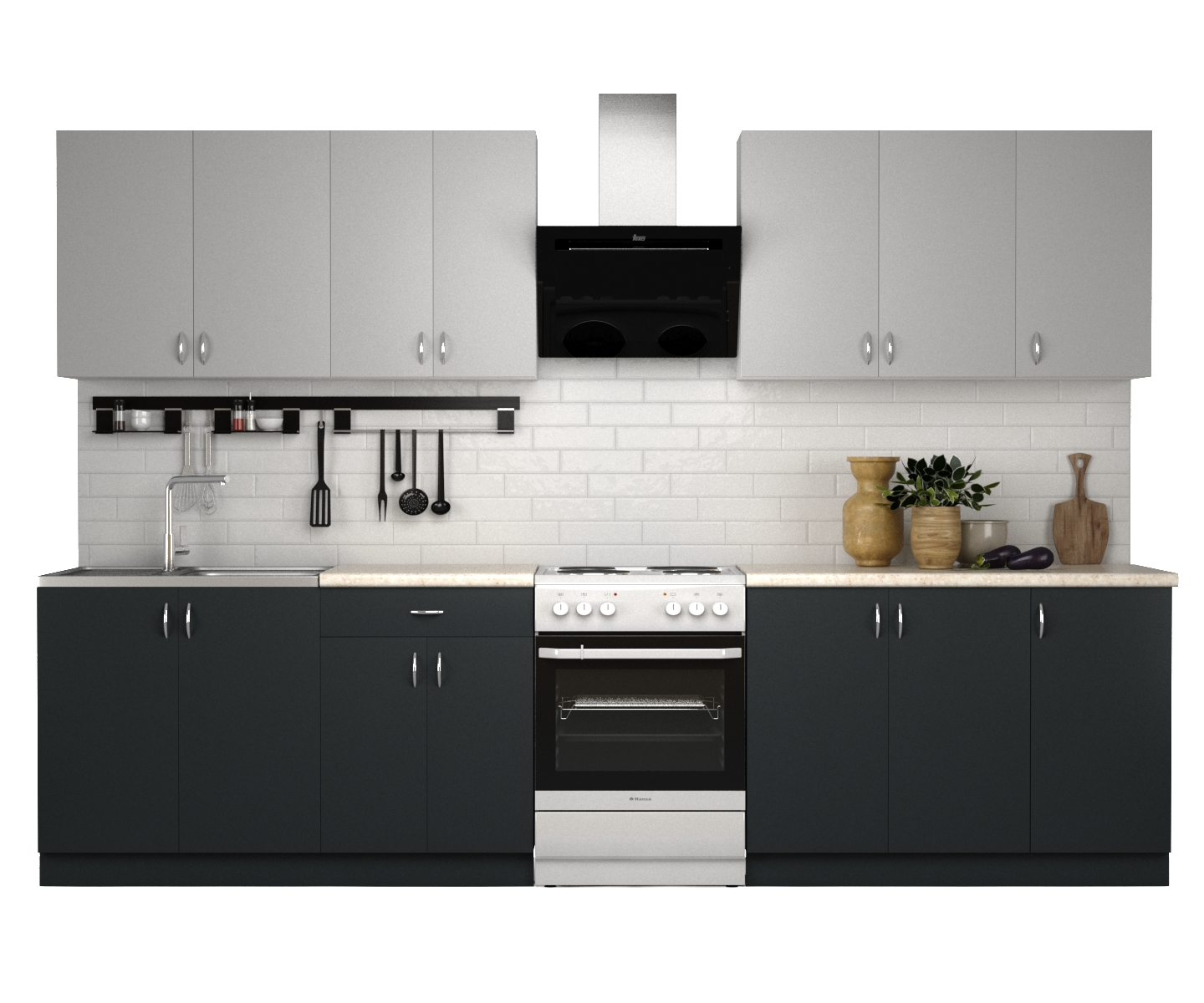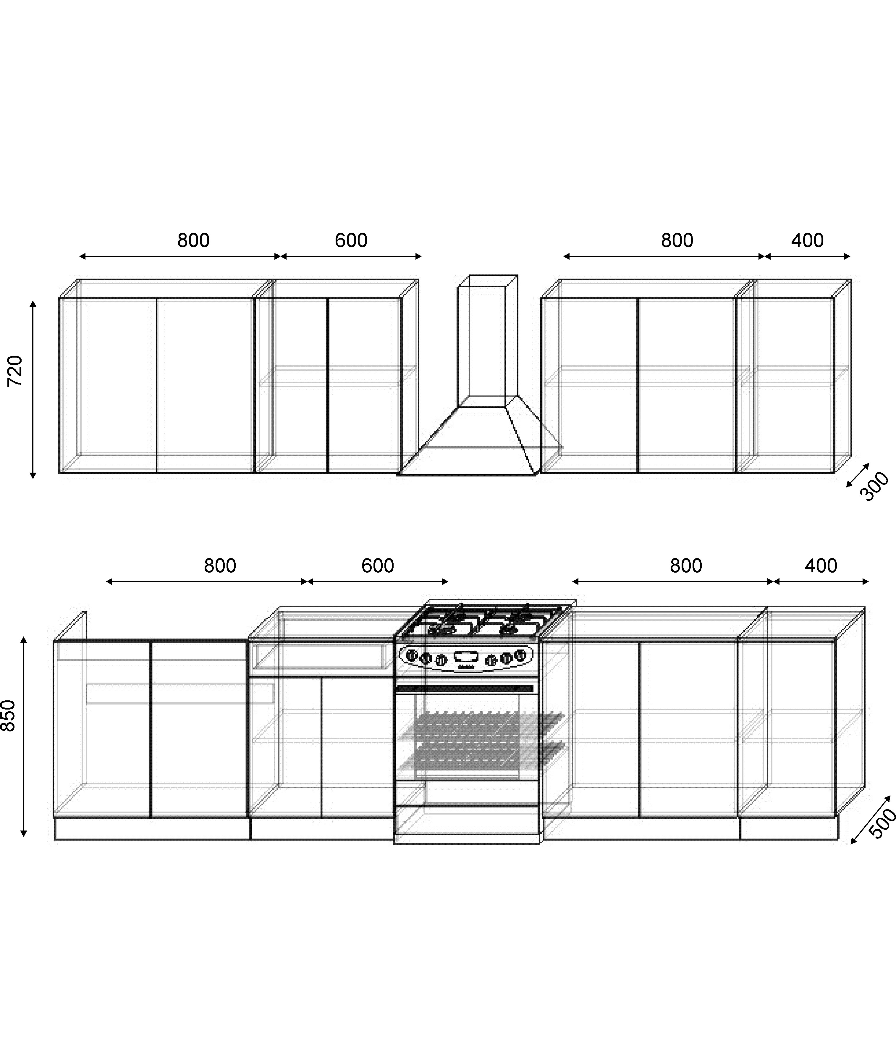Варианты модулей: в данной коллекции представлены следующие размеры шкафчиков: 300мм, 400мм, 600мм, 800мм. В зависимости от размера кухонного гарнитура, варьируются размеры и функциональное содержание шкафчиков.