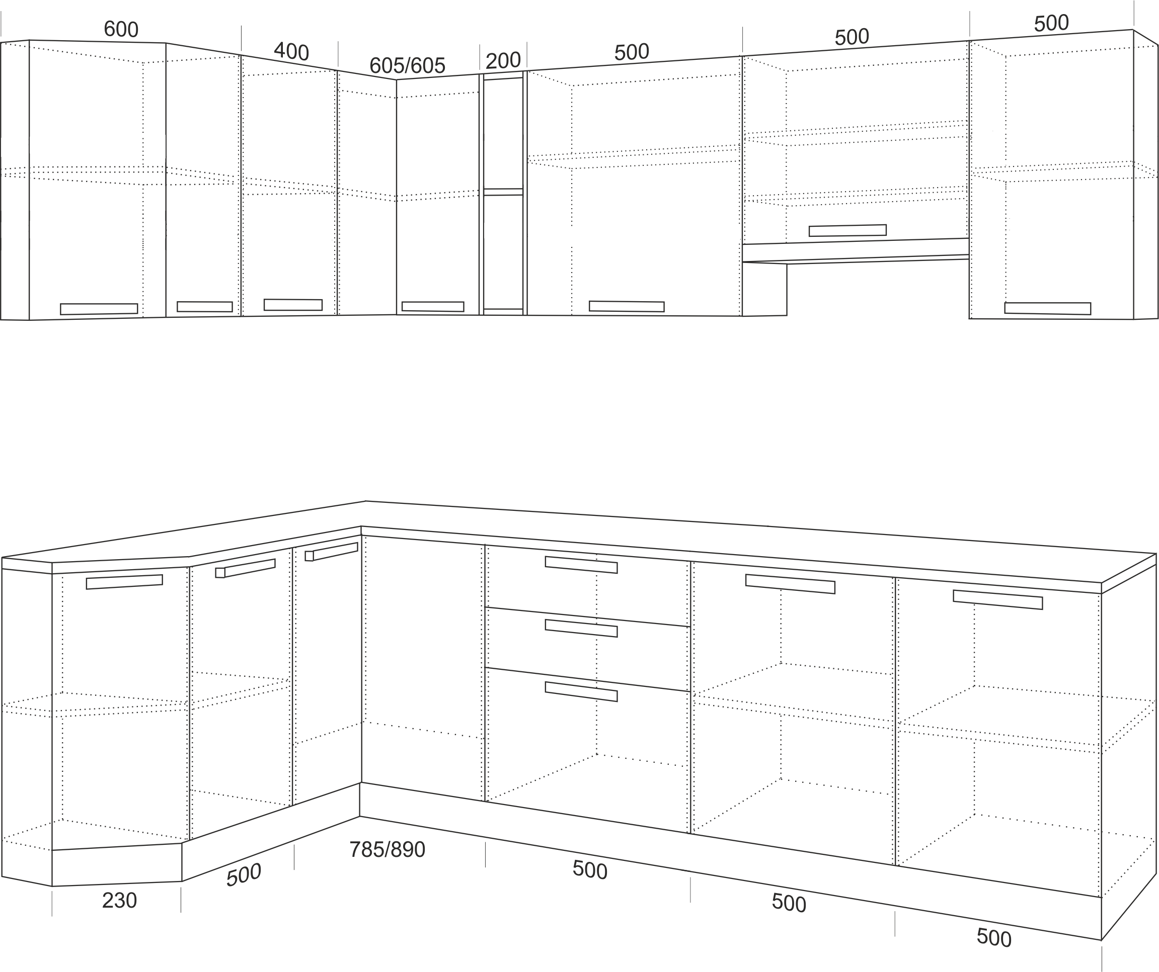Кухня «Нувель 2.2м» - Вариант 2 - Белый софт