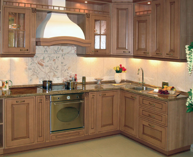 Если вас заботит идея о создание уютного домашнего очага, то классический стиль в проектировки кухонь будет незаменимым решением. Это подразумевает преобладание натурального древесного оттенка, застекленные дверцы и декоративную резьбу, которая долгое время считалась обязательным атрибутом при оформлении кухонь.