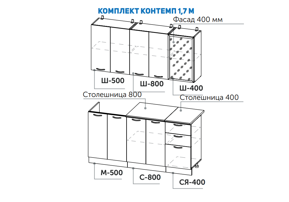 Комплектация: верх: Ш-500, Ш-800, Ш-400; низ: М-500, С-800, СЯ-400 (размеры см. прикрепленную картинку)